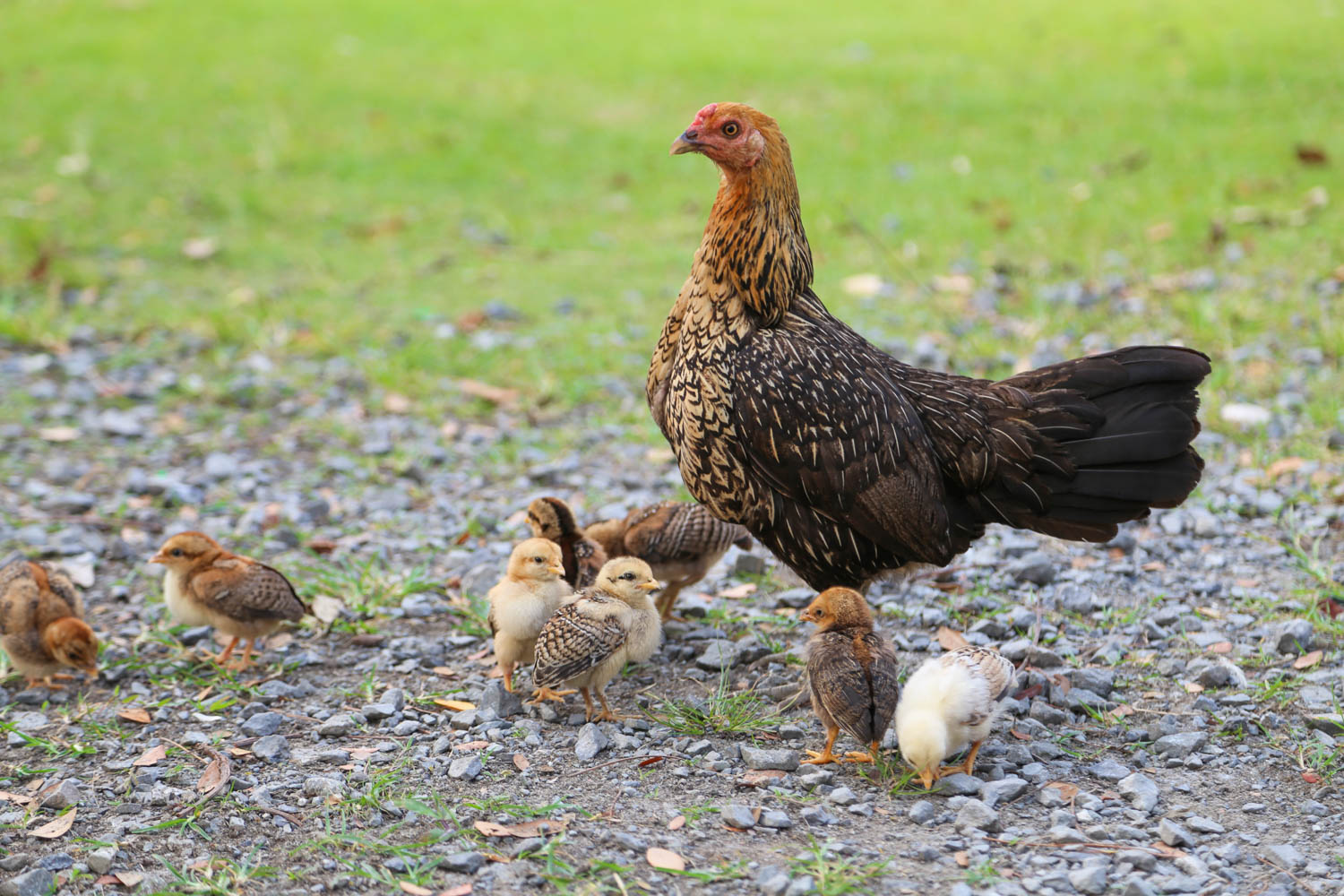 Temppelin piha oli täynnä kukkoja, kanoja ja pikkutipuja.