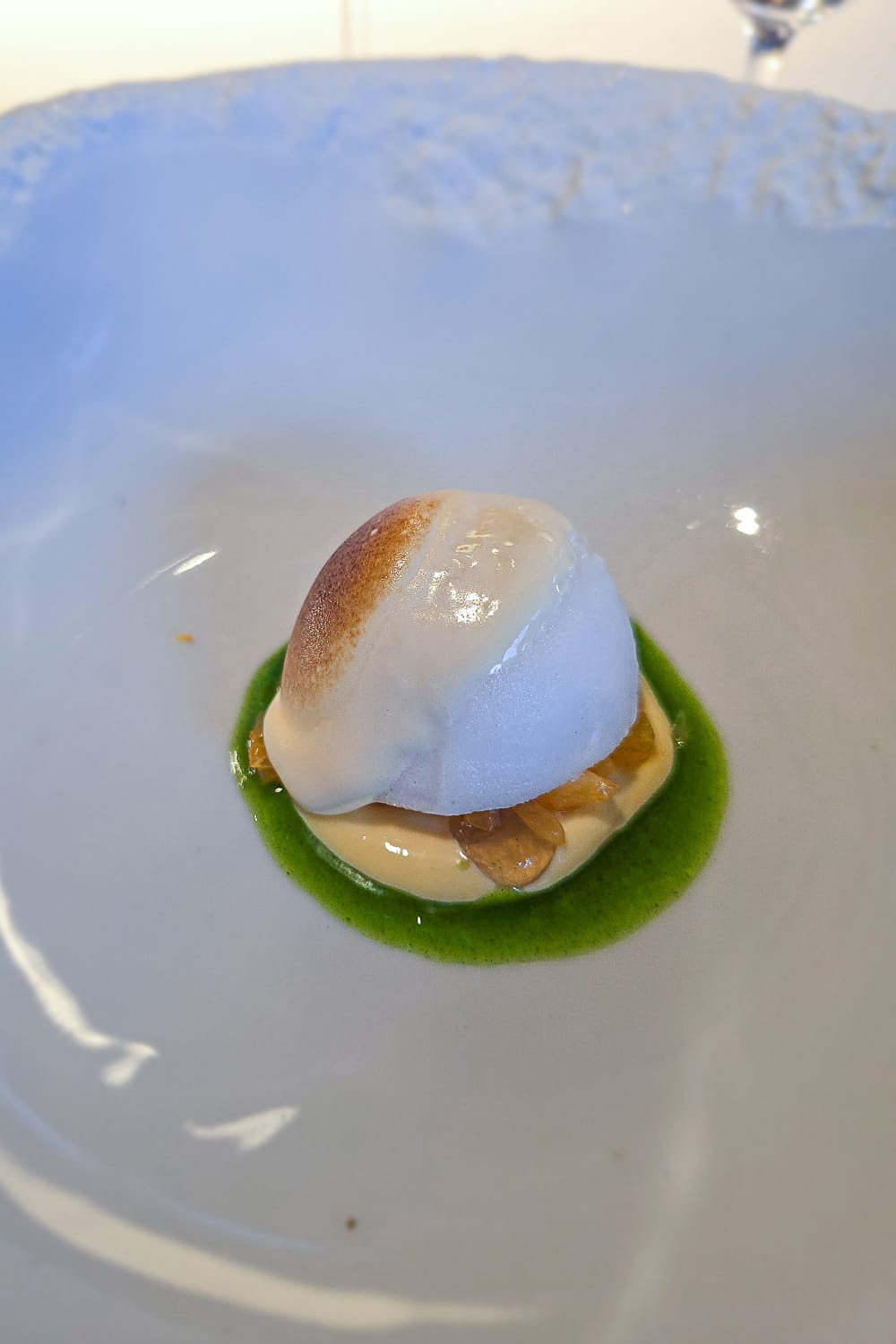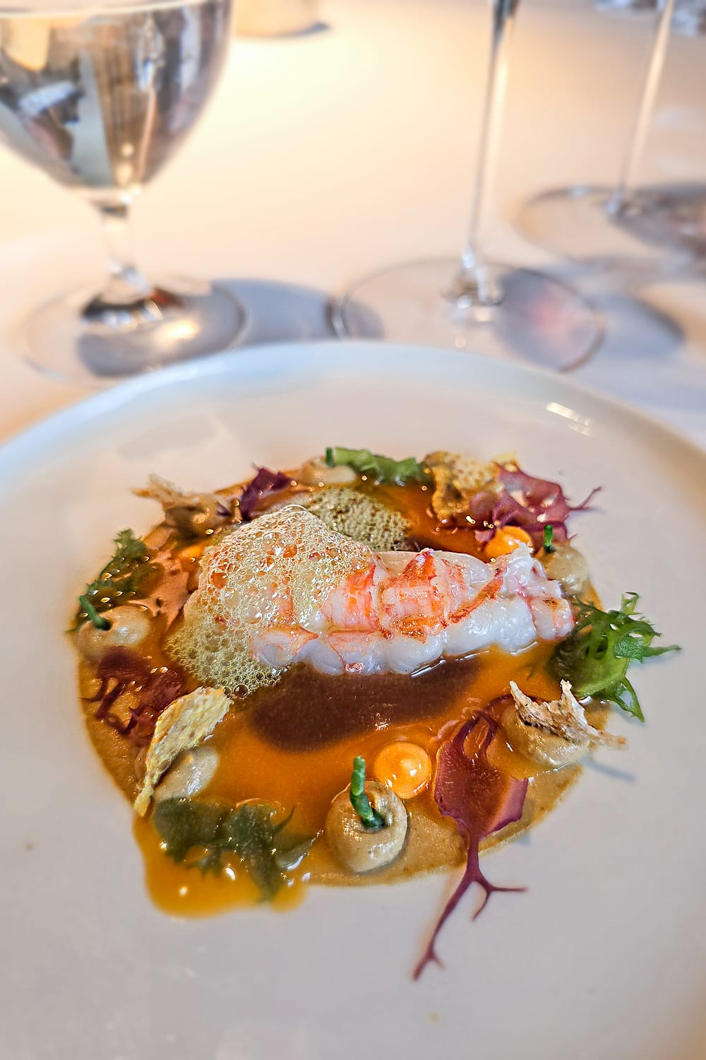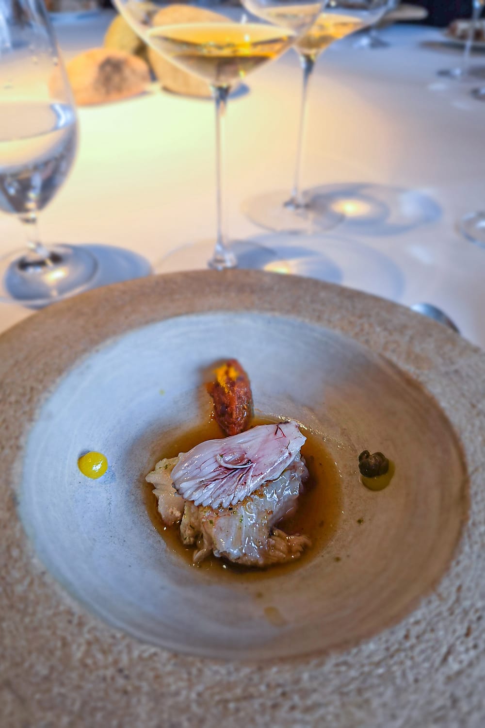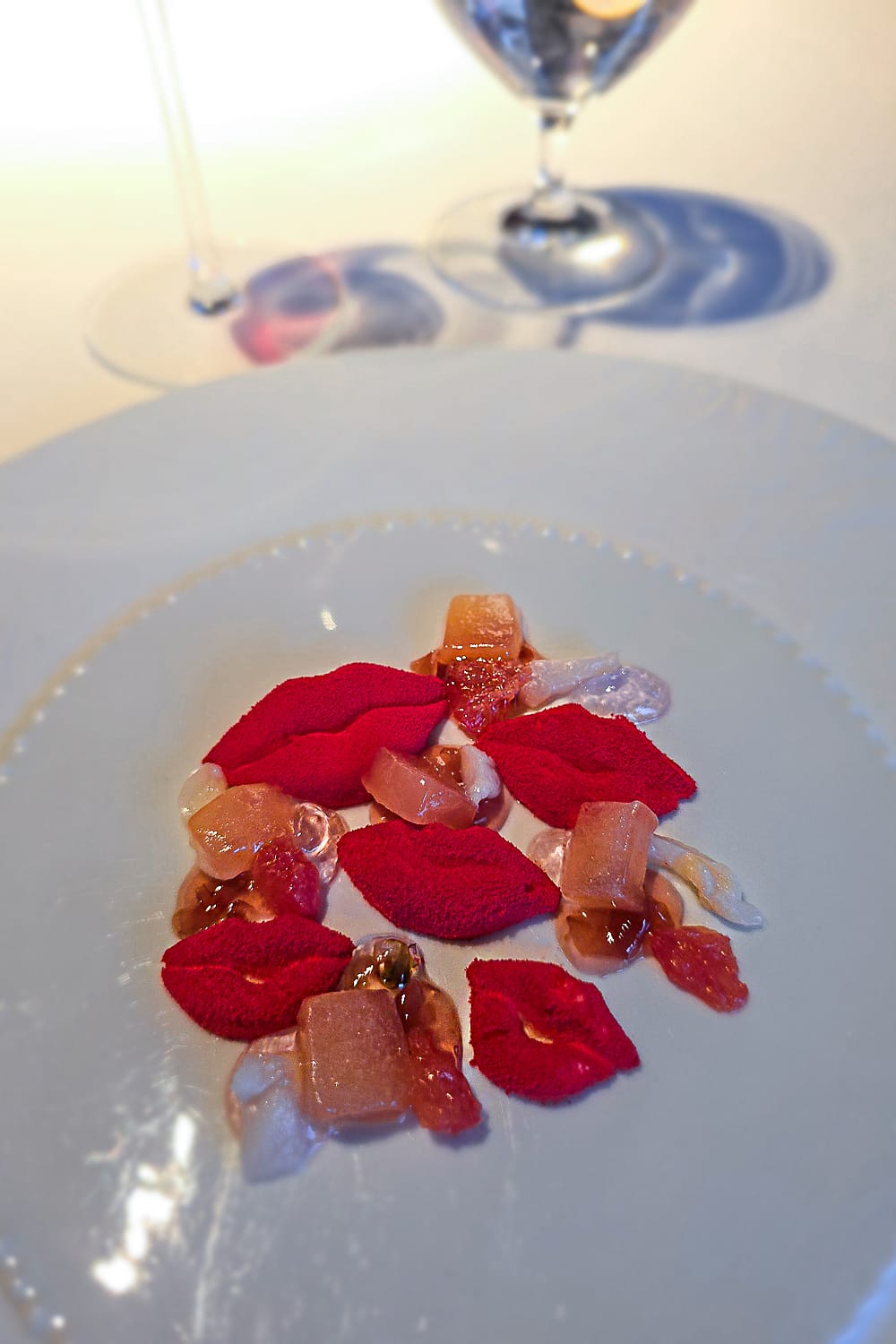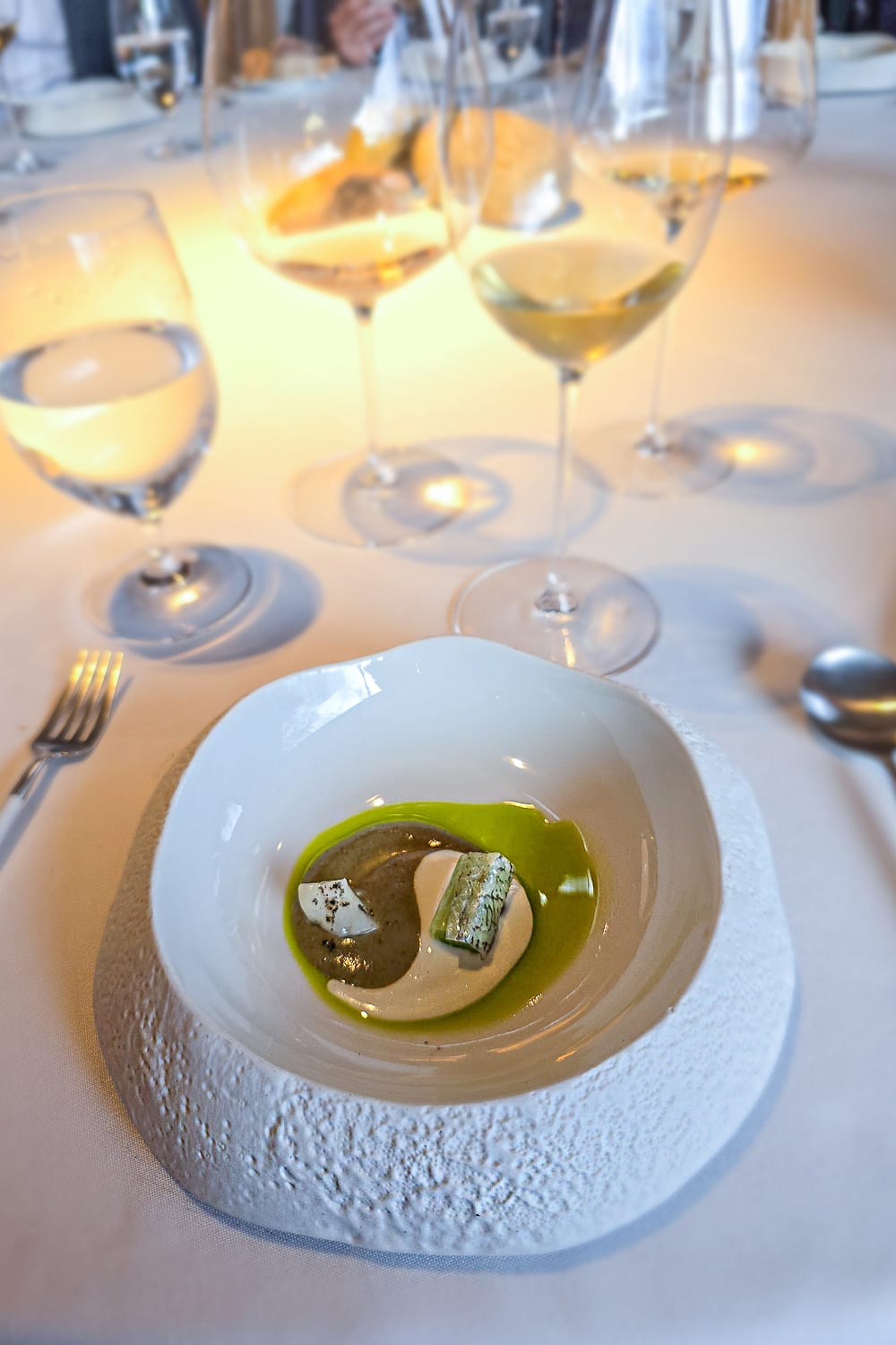 Jo alkupalojen aikana kävi selväksi, miten kunnianhimoista ruoanlaitto on tällä tasolla. Erilaisia ainesosia ja valmistustekniikoita oli jo yksittäisissä annoksissa sellainen määrä, että oma marina kotikokkailun työläydestä alkoi vähän nolottaa. Myös Michelin-ravintoloiden hintatasoa on tämän jälkeen hiukan helpompi ymmärtää (siitä lisää tuolla alempana).