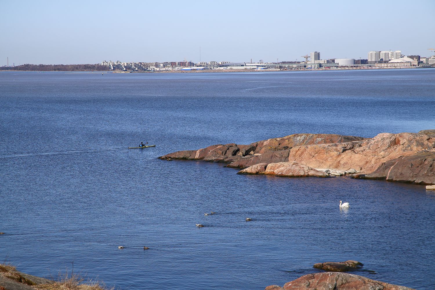 Suomenlinnassa kävelimme Kustaanmiekan kärkeen asti, istuimme rantakivetyksillä ja seurasimme lintujen pesimäpuuhia. Keli oli täydellinen ja lähes tuuleton.