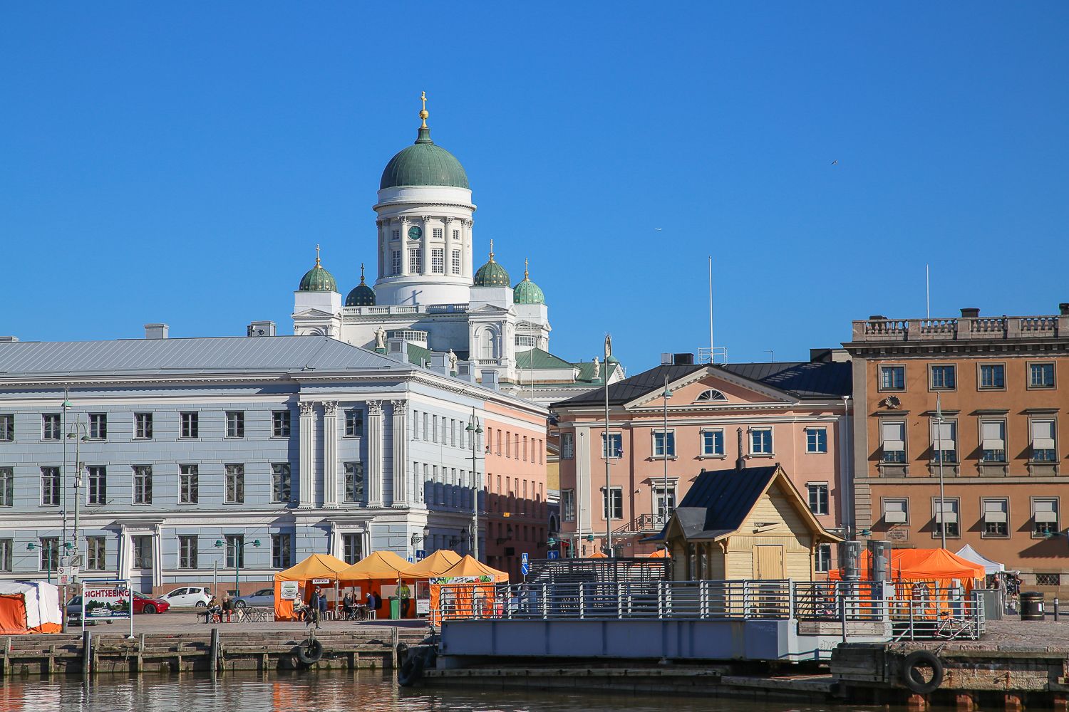 Oli mahtavaa kokea Helsingin aamu kerrankin niin, ettei tarvinnut itse kiirehtiä minnekään. Tykkään tarkkailla muiden tohinoita: Kauppatorin kojuissa lehteä lukevia ukkoja, lenkkeilijöitä ja koiranulkoiluttajia rantareitillä, torimyyjiä asettelemassa vihanneslaatikoita ja matkamuistoja paikoilleen. Ja mikä parasta: joka puolella kuuluu nyt vieraita kieliä. Korviin osui saksaa, ranskaa ja japania. Liikuttavaa. Elämä on vihdoin palaamassa uomiinsa.