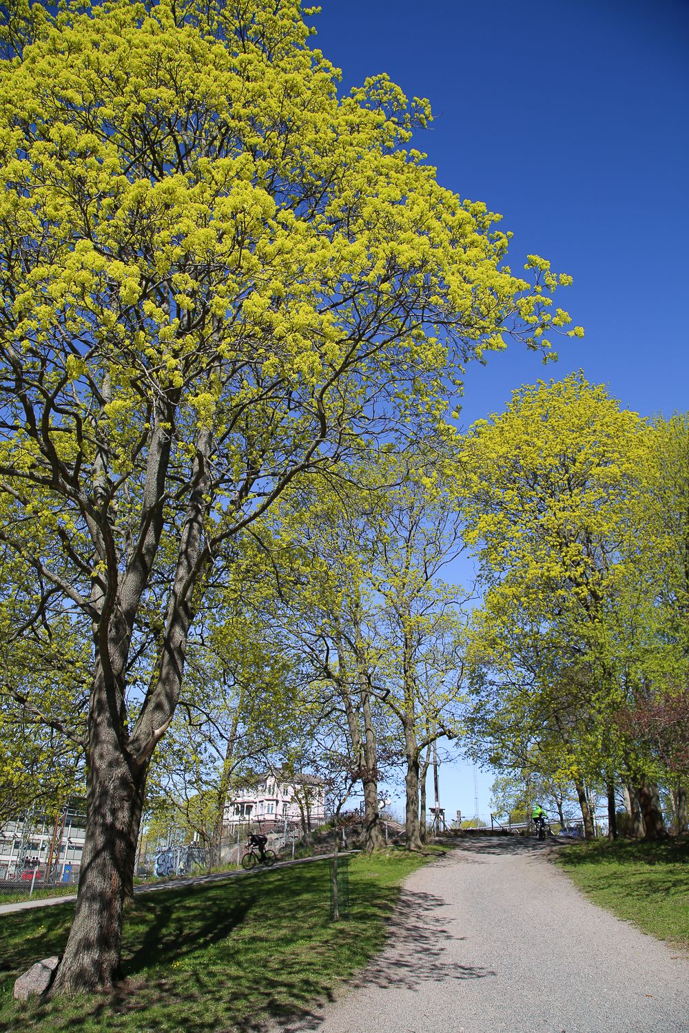Luulitte ehkä, että luovutimme jo. No ei sinne päinkään! Jatkamme kahden naisen tehotiimillä aamuretkiä aina, kun kalenteri ja sääennuste näyttävät hyviltä. Pari viikkoa sitten tilanne oli niin otollinen, että istuimme Annin kanssa bussissa kahdeksalta ja hujautimme Helsingin Hakaniemeen. Aamiaiset nautimme Patisserie Teemu Auran kahvilassa torin laidalla (suositus munakoiso-vuohenjuustopiiraalle!). Sieltä jatkoimme Eläintarhanlahden reunaa Linnunlauluun ja Töölönlahdelle. Aurinko lämmitti ihanasti ja kukkaloisto häikäisi. Kun purin illalla kamerasta kuvia, näytti hiukan siltä kuin olisimme tehneet pikamatkan Ranskaan.