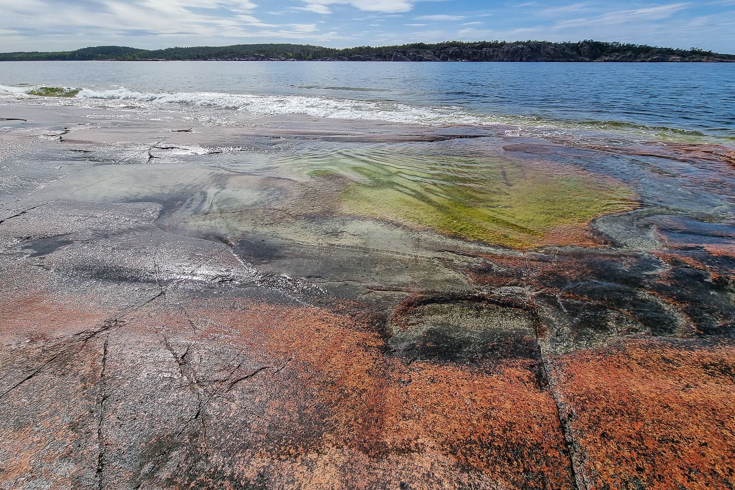 Illaksi ajelimme aivan Ahvenanmaan mantereen pohjoiskärjessä sijaitsevaan Havsvidden Resortiin. Jos tänne huristelee suoraan Maarianhaminasta, matkaan menee autolla noin kolme varttia. Getassa tuntee olevansa ulkosaaristossa, sillä edessä siintää silmänkantamattomiin sinistä horisonttia. Kauneimmillaan paikka on ilta-auringossa, kun graniittikalliot hehkuvat oranssinpunaisena. Aamulla takki tuli tarpeeseen, sillä meri oli täynnä vaahtopäitä ja tuuli navakka.