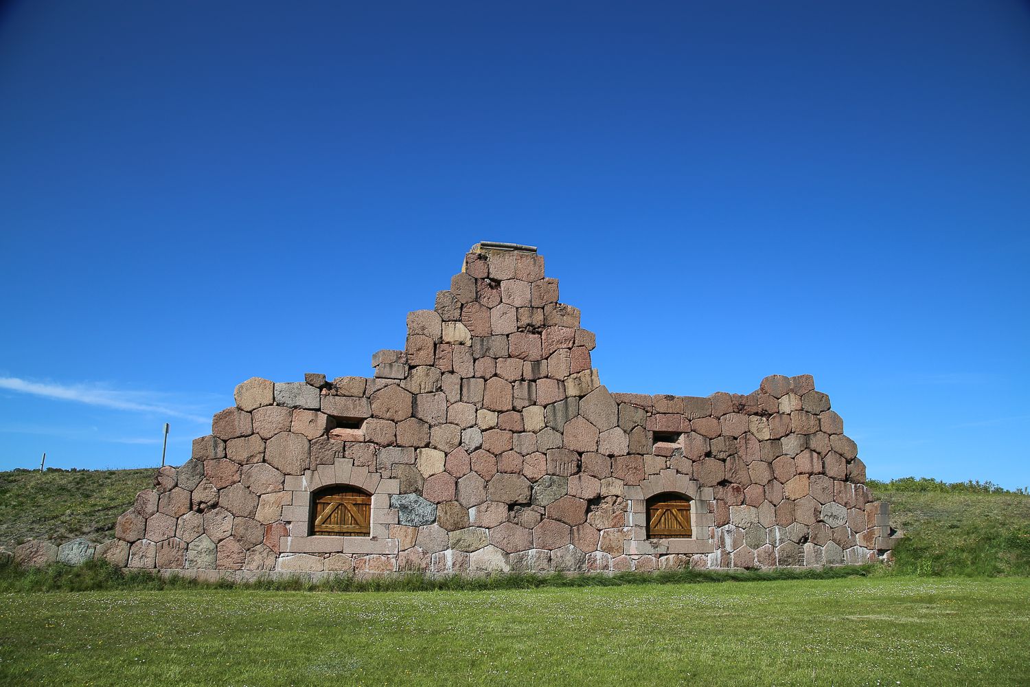 Kun Suomi joutui Venäjän vallan alle 1800-luvun alussa, Ahvenanmaan itäpuolelle Bomarsundiin alettiin rakentaa järkälemäistä puolustuslinnoitusta. Sitä ei vain ehditty koskaan saada aivan valmiiksi, sillä Oolannin sota syttyi 1854 ja britit ja ranskalaiset hyökkäsivät Ahvenanmaalle. On mahtanut olla melkoinen näky, kun kymmenet laivat ovat saartaneet Ahvenanmaata mereltä ja 12 000 sotilasta on jalkautunut Bomarsundiin. Tapahtumien massiivisuudesta saa hyvän käsityksen viime vuonna avatussa Bomarsundin vierailukeskuksessa, jossa hurjaa historiaa kerrataan isoilla screeneillä ja digimallinnuksina. Tarina on kerrottu niin kiehtovasti, että levottomampikin haahuilija malttaa loppuun saakka. Museokäynnin jälkeen kävin kävelemässä linnoituksen raunioiden luona. Täältä lähtee myös 4,2 kilometrin patikointipolku.