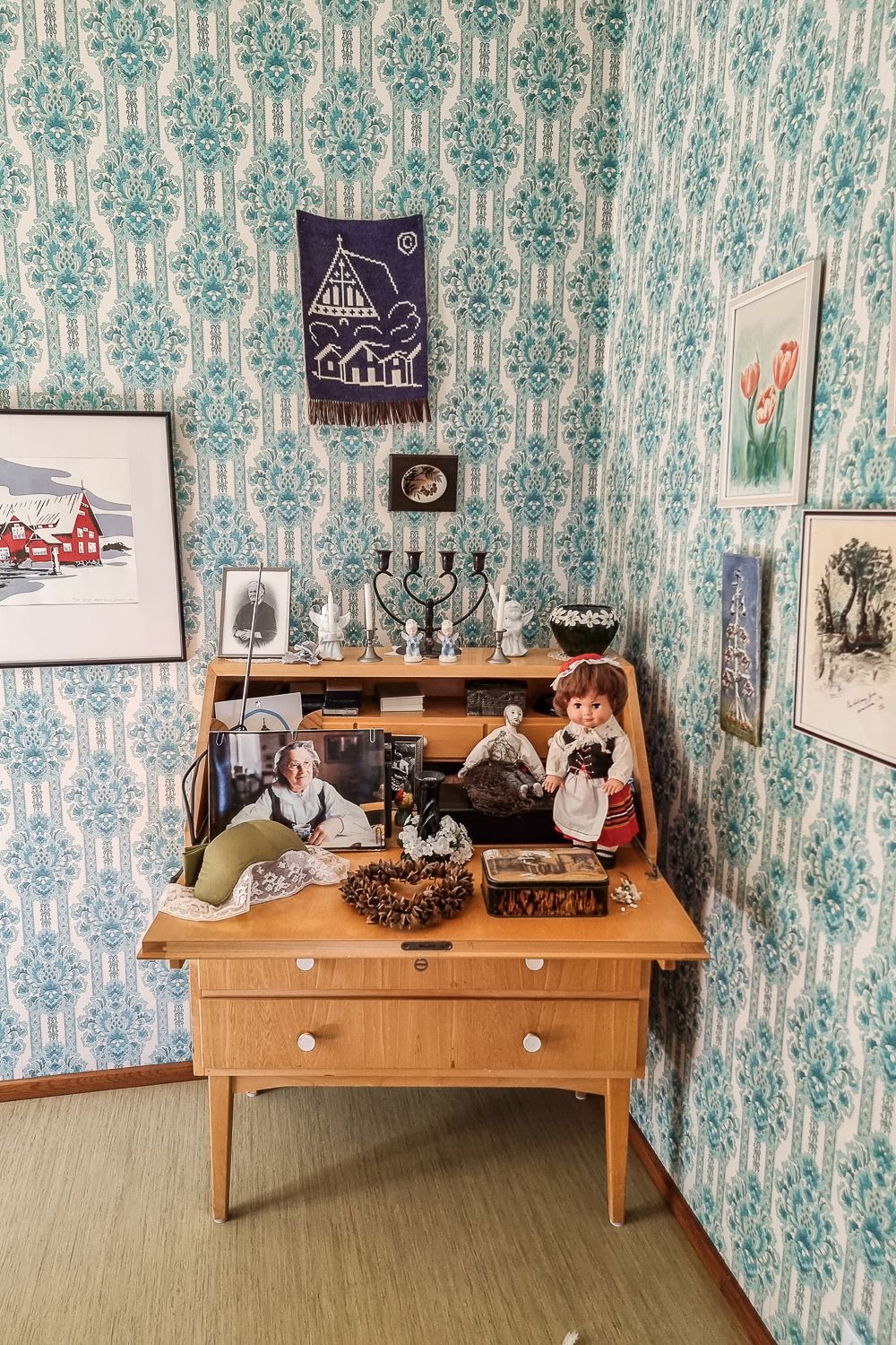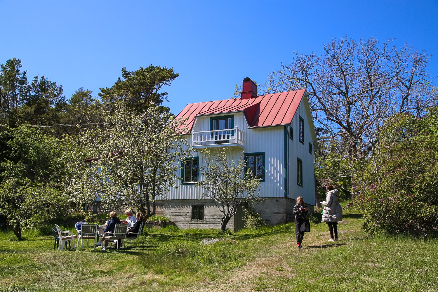 Ajelimme tällä reissulla myös Anni Blomqvistin kotiseudulle Vårdön kuntaan ja Simskälän saarelle, jonne liikennöi lossi. Vanha kotitalo on nykyään museona, mutta sitä voivat myös kirjailijat hakea väliaikaiseksi työtilakseen. Sisällä tuntuu juuri siltä kuin aika olisi pysähtynyt 60–70-luvulle. Eteisen naulakossa roikkuu mattopiiska ja Annin vanhoja vaatteita, olohuoneessa raksuttaa kaappikello ja keittiön ikkunalaudalla on pieni antenniradio. Täällä on varmasti ollut kirjoitusrauha ja vapaus olla yksin.