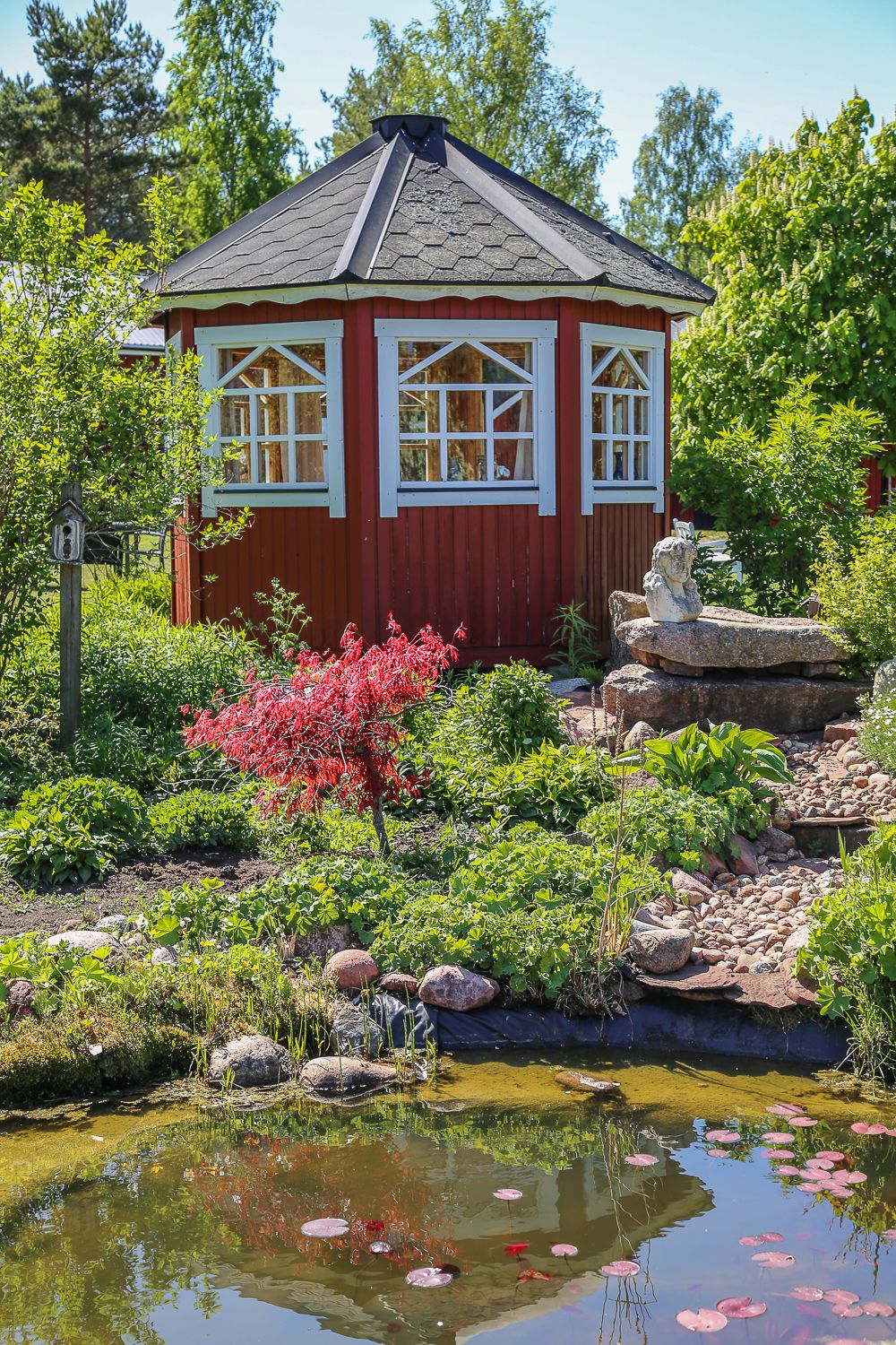 Tunnistan nopeasti paikat, joita on tehty sydän edellä. Sellainen on Timo ja Hanna Vetriön perustama ravintola Kallas Skärgård, joka osuu kätevästi reitin varrelle Simskälasta tullessa. Jo Vetriöiden idyllinen puutarha Vårdössä on näkemisen arvoinen: pihaa koristavat päärynä- ja omenapuut, marjapensaat, huolitellut perennapenkit, lampi ja huvimaja.
