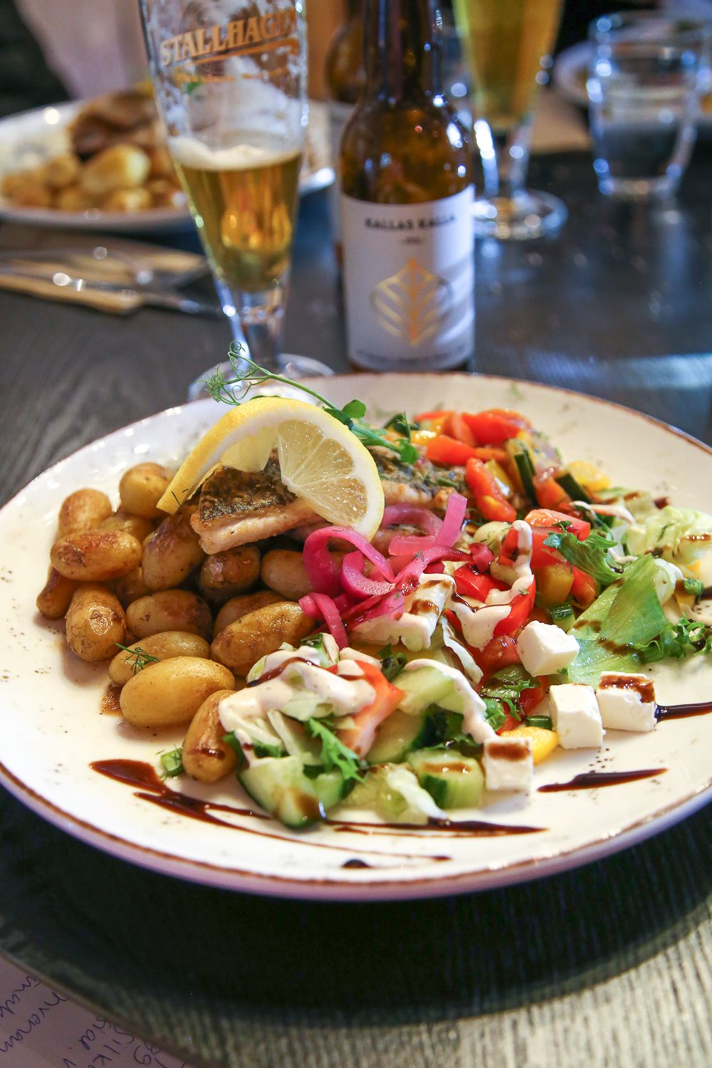 Hanna ja Timo muuttivat Ahvenanmaalle Turusta 1989 ja perustivat Kallas Skärgårdin nelisen vuotta sitten. Kaiken oli tarkoitus olla pienimuotoista, mutta niin kävi, että sana kiiri ja nyt perheravintolaan tulee kesällä väkeä bussilasteittain. Ravintolaan kannattaakin tehdä etukäteen varaus, jotta keittiön puolella osataan varautua tulijoihin. Menu koostuu pääasiassa maukkaasta koti- ja lähiruoasta: me söimme täällä päivän kalasaaliiksi saatua siikaa salaatin ja uusien perunoiden kera. Niin simppeliä ja hyvää! Annokset ovat isoja ja hinnat vaihtelevat noin 17–27 euron välillä.