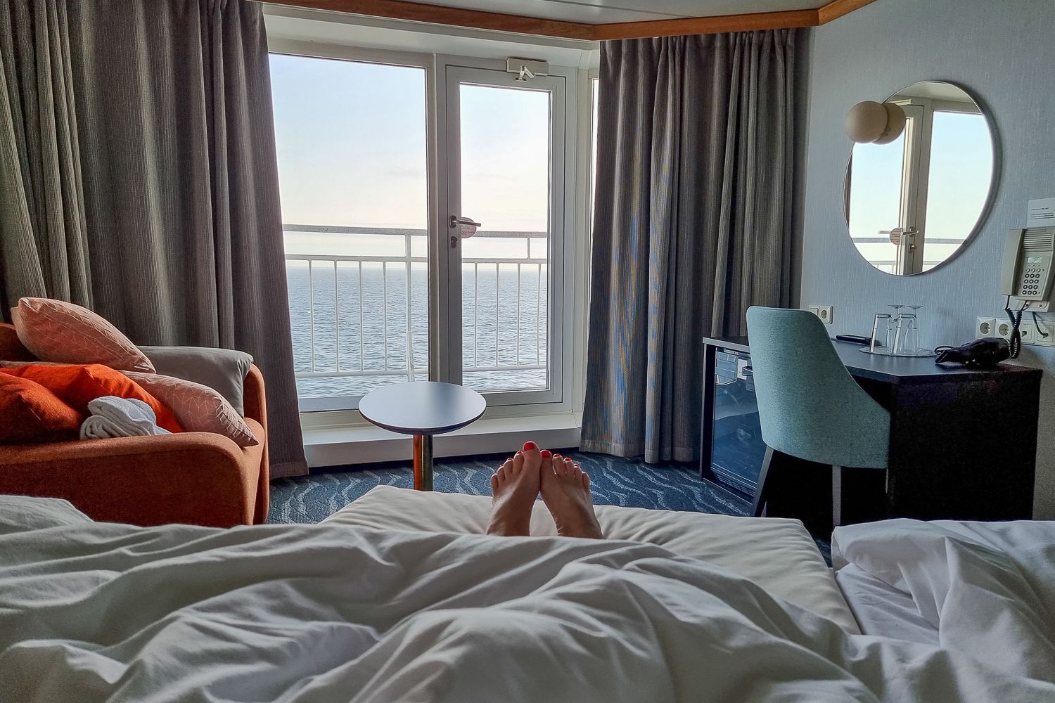 Lähdin muuten tällä kertaa Ahvenanmaalle Turusta Viking Glorylla. Paluumatkalla pääsin testaamaan Viking Gabriellan freesattuja Lux Seaside Premium -hyttejä, joiden kiehtovin ominaisuus oli yhä tallella: hytissä on oma parveke!
