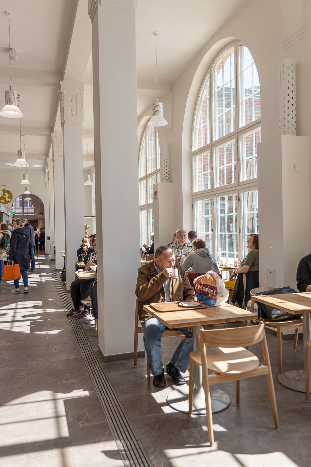 Olen tykännyt kauppahallien fiiliksestä aina, mutta remontoitu Hakaniemen halli on erityisen kaunis ja monipuolinen. Talo on entisöity vanhaa tyyliä kunnioittaen, mutta yleisilme on nyt valoisampi. Katutason Hallikahvilassa on kiva seurata ihmisvilinää, mutta lounasteluun löytyy enemmän rauhaa kakkoskerroksesta. Kasvisravintola Lohdussa on hyviä keittoja ja salaatteja (11,20–14,50 e). Ravintola Kirsikassa vatsa täyttyy puolestaan laadukkailla pastoilla ja risotoilla (13,50–15 e).