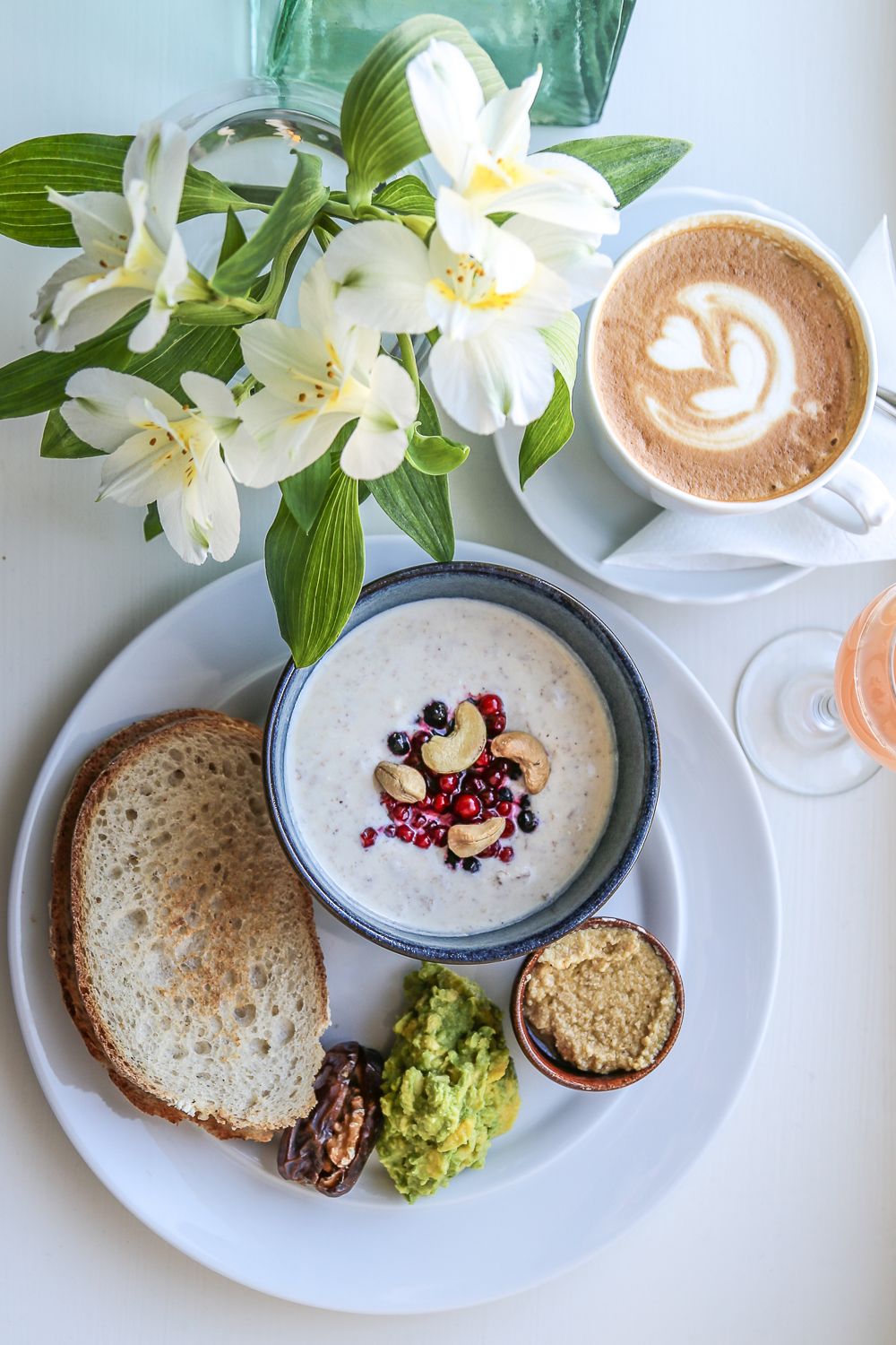 Jälleen ikisuosikki, jota ei vain voi olla mainitsematta. Cafe Engelin aamiaisella tarjottava birchermysli on legenda, joka kannattaa kokea. Valitsenkin täällä usein Äiti Maa -aamiaisen (17,20 e), johon kuuluu omenaisen bircherin lisäksi marjoja, maalaisleipää, Engelin hummusta, avokadoa, medjool-taateleita, saksanpähkinöitä, omenamehua, kahvia ja tyrnishotti. Cafe Engelin ainoa huono puoli on, että paikka on usein aika täynnä ja äänekäs. Parhaimmillaan Engel on vapaapäivänä, kun voi vain tuijotella ikkunasta avautuvaa Helsingin tuomiokirkkoa eikä ole kiire minnekään.