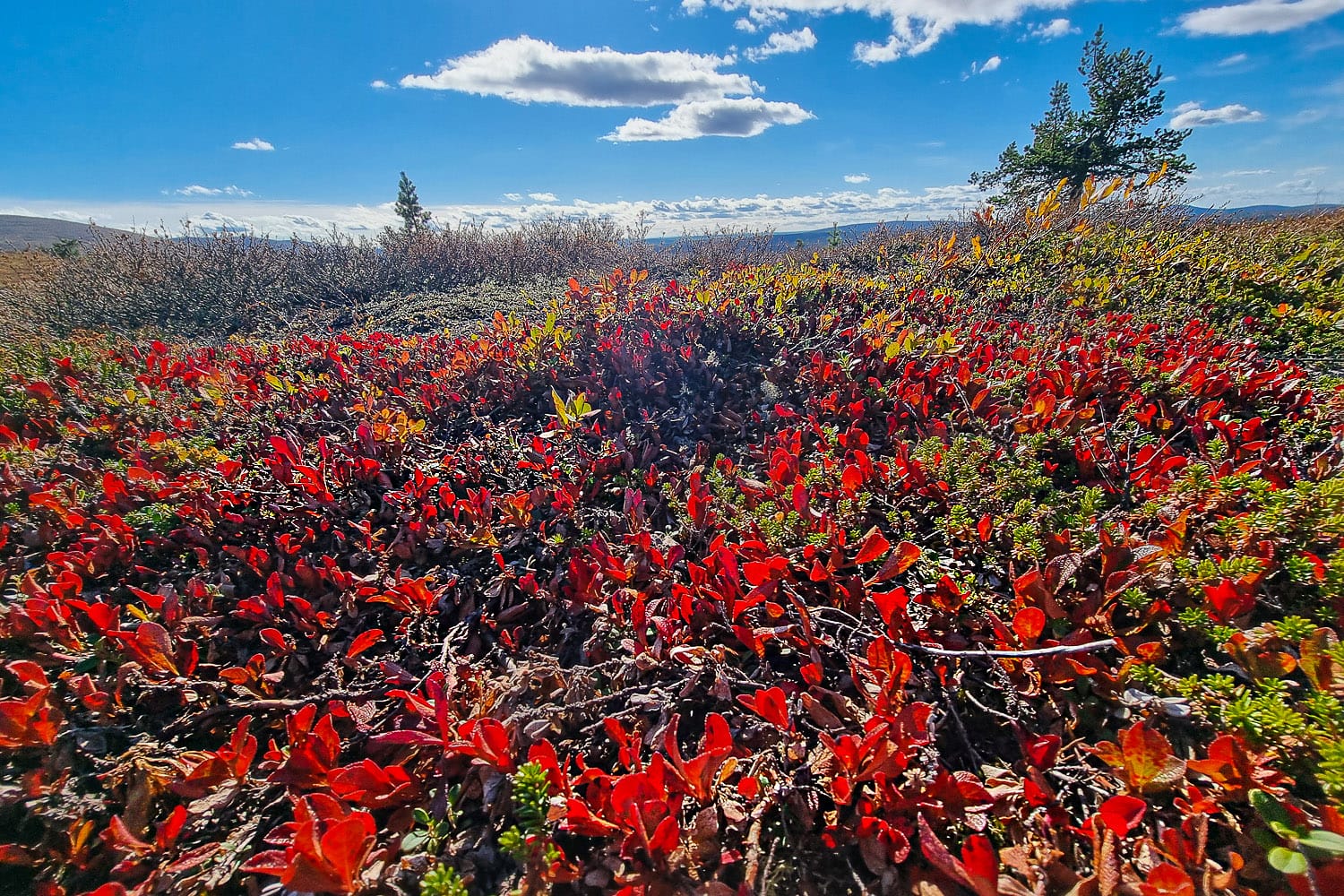 Hetta-Pallaksen luonto on uskomattoman monipuolinen. Välillä taivalsimme kilometritolkulla oranssin erämaan ympäröimänä, jota koristivat vain matalat mättäät, kanervikot ja jäkälät. Sitten reitti luikersi kitukasvuisten koivikoiden ja soiden keskelle ja sieltä jälleen rakkakivikkoisille poluille, joissa tasapaino joutui koetukselle. Puuttomien kerojen reunoilla ja tuulisten huippujen päällä muistimme oman pienuutemme ja Suomen laajuuden. Vantaan koti tuntui olevan valovuoden päässä.