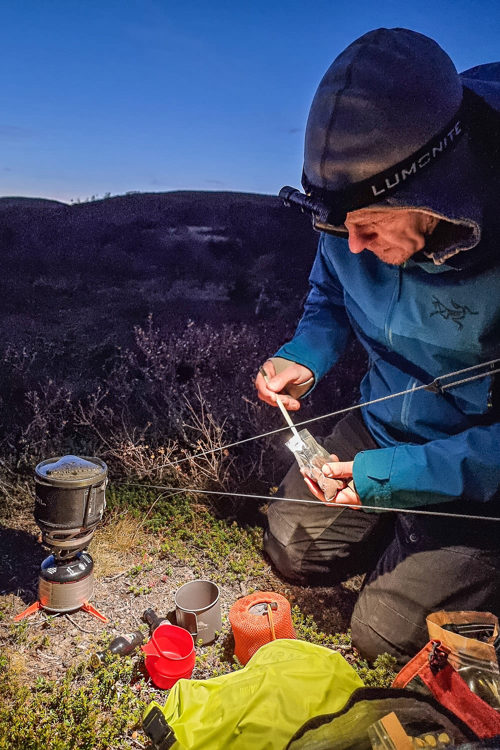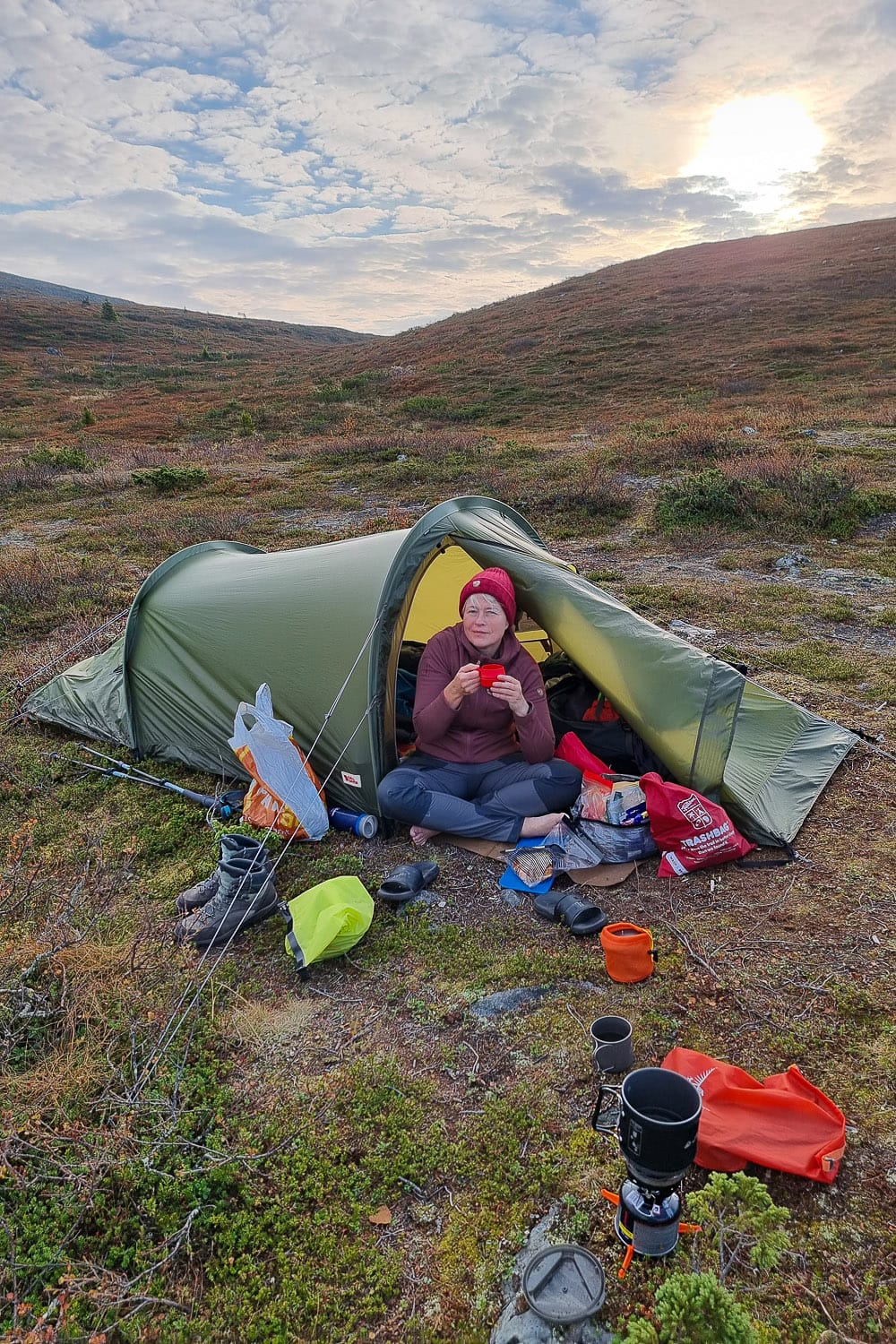 Ai niin, jos tulet lentäen, kannattaa muistaa, ettei lentokoneeseen saa ottaa mukaan retkikeittimen kaasupulloa. Mutta ei hätää, kaasua löytyy Hetan kylän kaupoista.