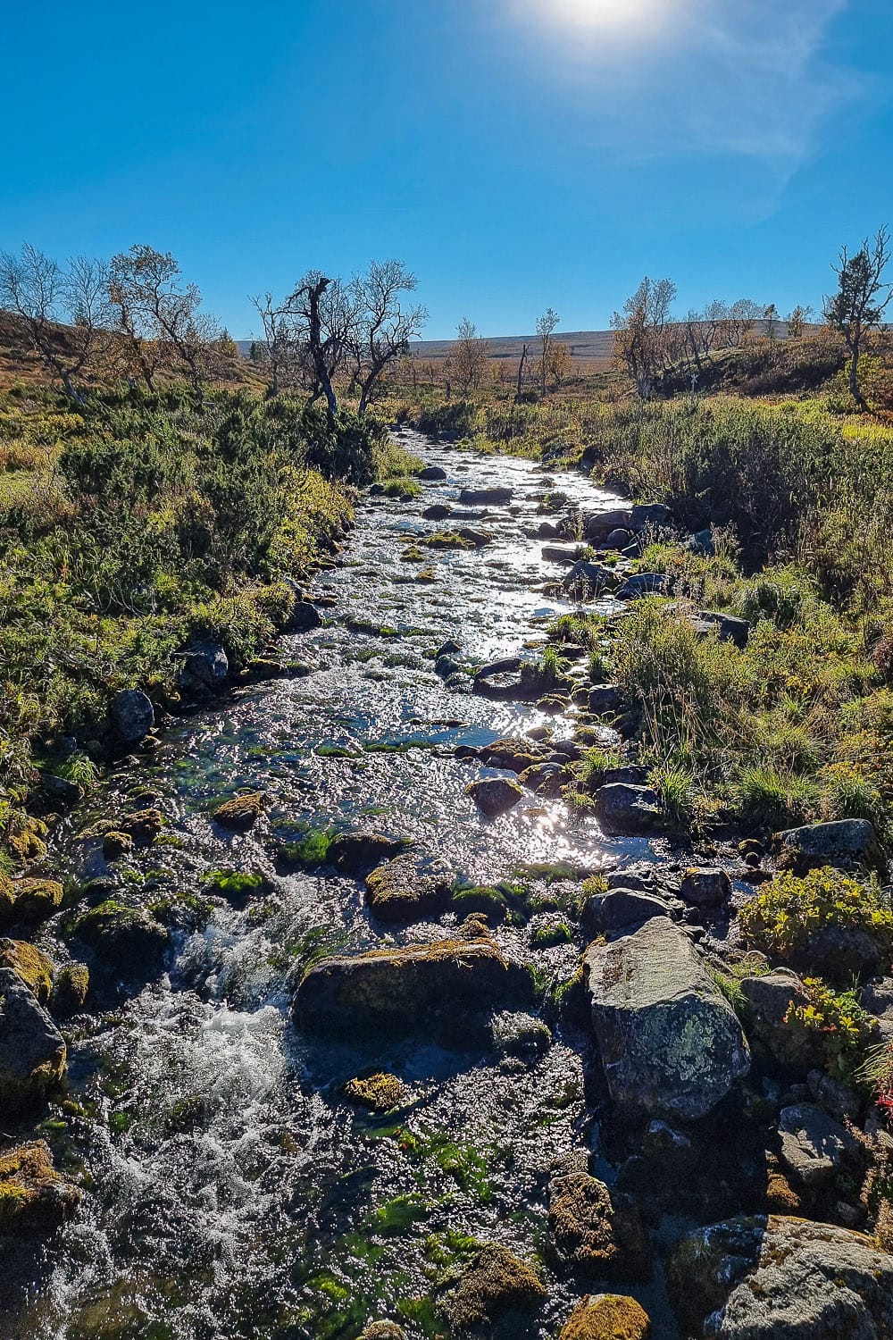 Yllättävintä oli, ettei virtaavaa vettä ollut Hetta-Pallas-reitillä mitenkään yltäkylläisyydeksi saakka. Viime vuoden Ruotsin-vaelluksella kuljimme käytännössä melkein koko ajan jonkun vuoristopuron reunaa pitkin, jossa sai täytettyä vesipullon. Leiripaikkojen yhteyteen on toki Hetta-Pallaksella merkitty kaivoja ja vesipisteitä, mutta esimerkiksi Hannukurussa kaivo oli suljettu. Niinpä jouduimme hakemaan vettä viereisestä järvestä. Reitillä suositellaan aina keittämään vesi. Meillä oli mukana myös vedensuodatin, jonka läpi käytimme juomaveden ennen keittämistä. Voi olla, että tämä oli hätävarjelun liioittelua, mutta eipä vatsa ainakaan mennyt kuralle. Se on kuitenkin selvää, että vettä kannattaa juoda päivän aikana runsaasti, sillä täyden rinkan kanssa taivaltaminen on kropalle rasitus.