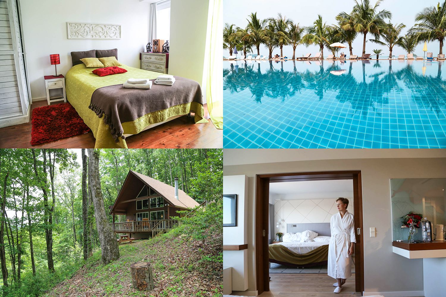 Tämä on lempiaiheeni, josta voisin kirjoittaa juttuja vaikka kuinka! Majoitus on tärkeä ja usein myös kustannuksiltaan isoin matkainvestointi. Toki sekin riippuu reissun luonteesta: yhden yön tai viikonlopun majoitukseen käy halpa motellikin, kahden viikon rantalomalla puitteilla on jo merkitystä. Vuodesta 2012 olemme hyödyntäneet aktiivisesti myös airbnb-koteja, joiden tarjonnan katsastan aina. Kreikan Samoksella päädyimme kodikkaaseen budjettihotelliin, Roomasta löysimme ihanan putiikkihotellin ja Thaimaan Koh Changilta buukkasimme todellisen helmen. Tarpeellisia irtiottoja ovat olleet myös kahdenkeskiset hotelliyöt Timpan kanssa, kuten tämä joululahja.