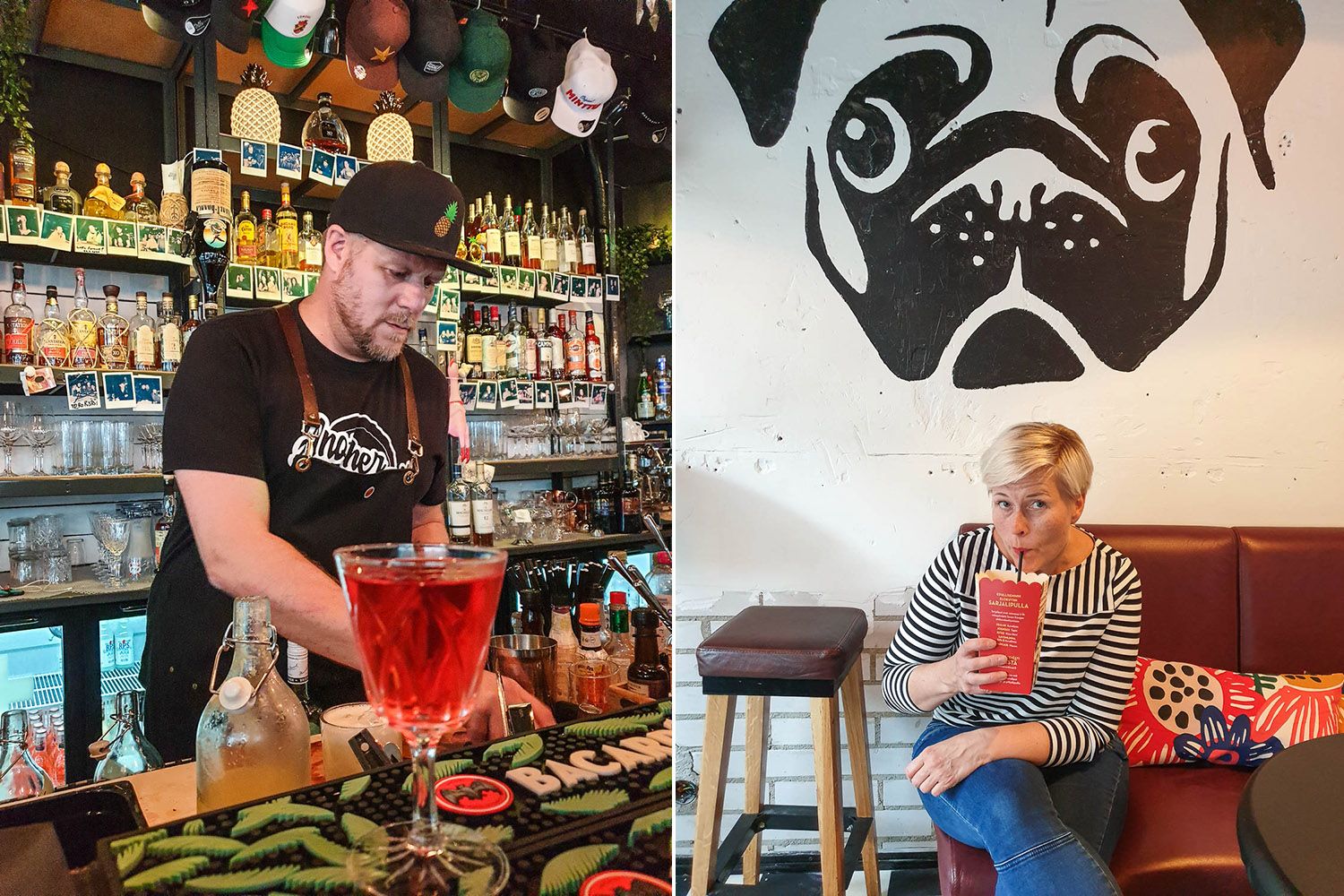 Sydämessä läikähtää aina lämpimästi, kun tapaan ihmisiä, jotka ovat toteuttaneet intohimonsa ja tekevät sitä täydestä sydämestä. Joensuun hienoimpia kohtaamisia oli pyörähdys Jussi Viljalan pyörittämässä Another Doggyssa. Suomen parhaimmaksi baarimestariksikin valittu (ja useita alan kilpailuja voittanut) Jussi avasi Another Doggyn juuri koronakurimuksen alla vuonna 2019. Cocktail-baari on Viljalan pitkäaikainen unelma, johon hän on hakenut vaikutteita Itä-Lontoosta, Berliinin yöelämästä ja aiemmasta työpaikastaan Kyrö Distillerystä. Jussin suunnittelemissa cocktaileissa vain mielikuvitus on rajana: oman juomani nautin popcornien kera pahvitötsästä. Tämän kanssa vois mennä leffaankin, eikä kukaan aavistaisi mitään.