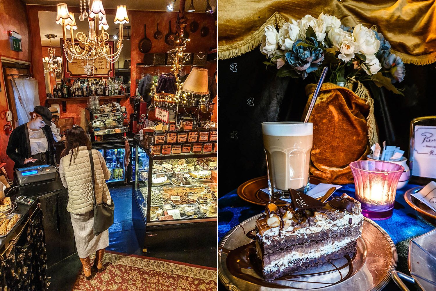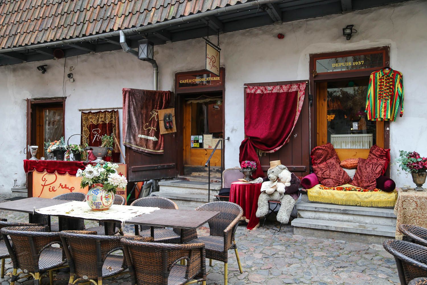 Tätä Tallinnan herkullisinta suklaakahvilaa ovat monet suositelleet, viimeksi Sooloiluja-blogia pitävä Henna. Vanhankaupungin Mestaripihalla sijaitseva Chocolaterie Pierre on kuin hyppy entisaikojen Pariisiin: persoonallisesti ja runsaudella sisustettu. Käsintehtyjen konvehtien, suklaakakkujen ja erikoiskahvien äärellä iskee valinnan vaikeus. Tekisi mieli kahmia mukaan kaikki. Se ei kuitenkaan kannata: jälkkärit täällä ovat niin makeita, että sokerihammas tyydyttyy, vaikka kakun jakaisi kaverin kanssa puoliksi. Lisäpisteitä muuten Pierren ihanasta taustamusiikista, joka on kuin mustavalkoisista leffoista.