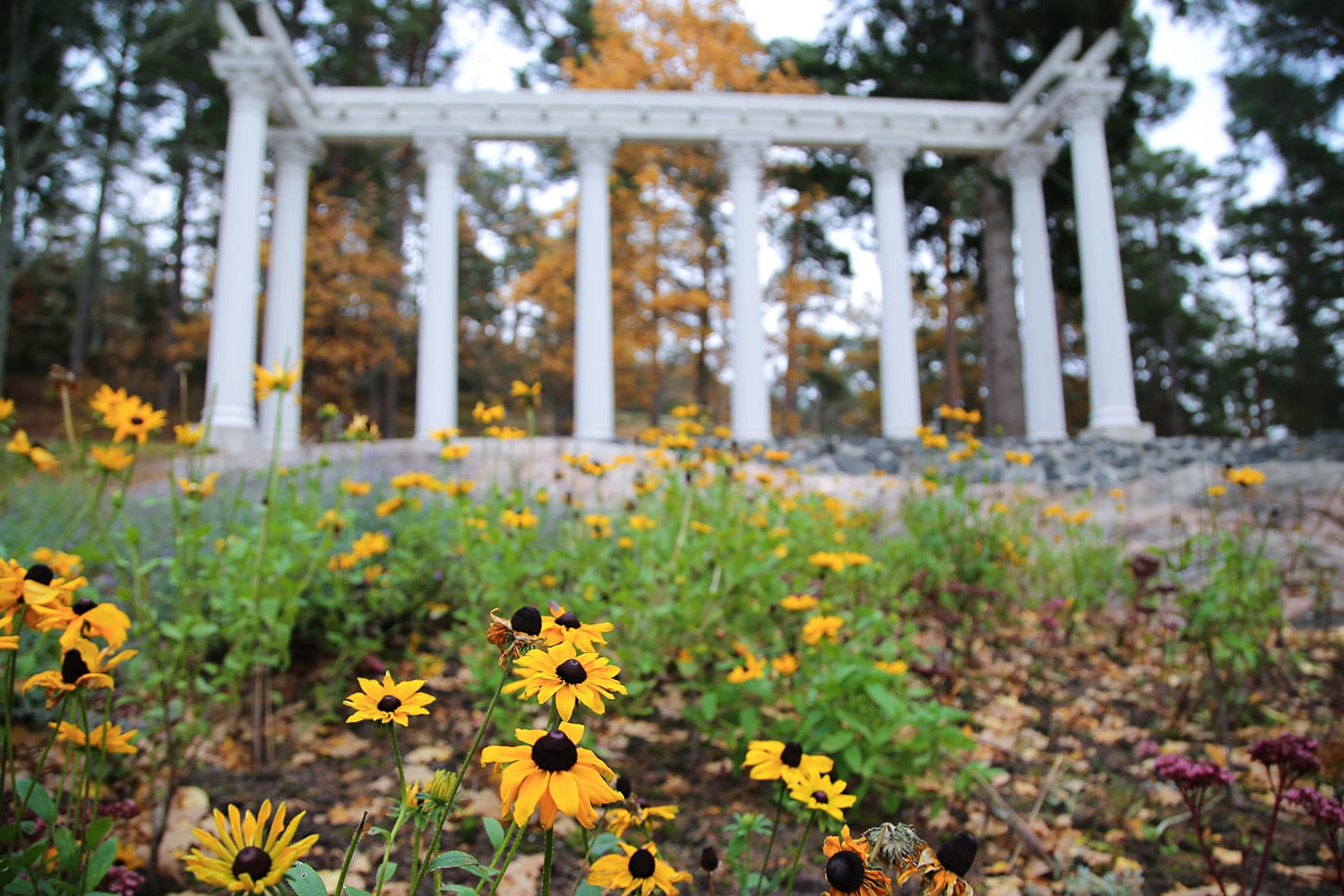 Söderlångvikista erityisen tekee sen arkkitehtuuri. Taidemesenaatti Amos Andersson hankki kartanon kesäpaikakseen 1927 ja muokkasi siitä italialaistyylisen villan. Hulppeat pylväiköt ja patsaat näyttävät jokaisena vuodenaikana hiukan erilaiselta. Nyt niitä reunustivat ruskan värjäämät puut ja komeat kukkapenkit, jotka olivat vielä lokakuun lopullakin komeassa loistossa.