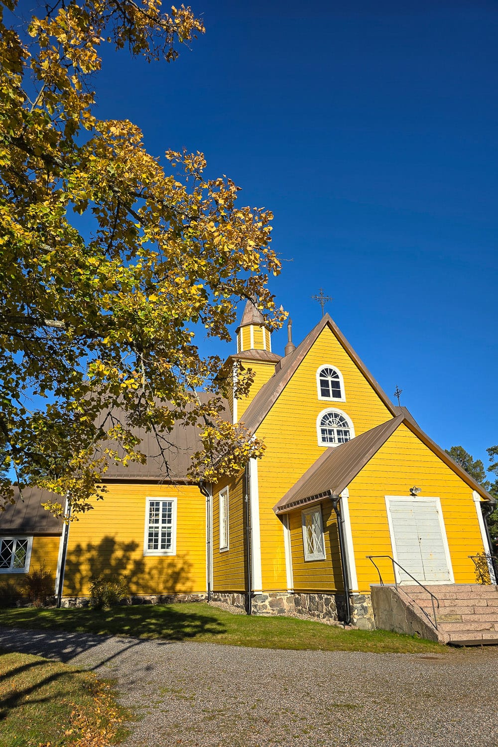 Vuokramökkimme sijaitsi Dragsfjärdissä, joten täällä tuli pyörittyä viikon aikana usein. Dragsfjärdin keltainen puukirkko on suosikkini. Harmittaa, etten älynnyt käydä pyytämässä vieressä sijaitsevasta seurakuntakeskuksesta, että pääsisin tutkimaan kirkkoa myös sisältä. Tämä vinkiksi teillekin, jos liikutte täällä päin ja huomaatte ovien olevan lukossa.