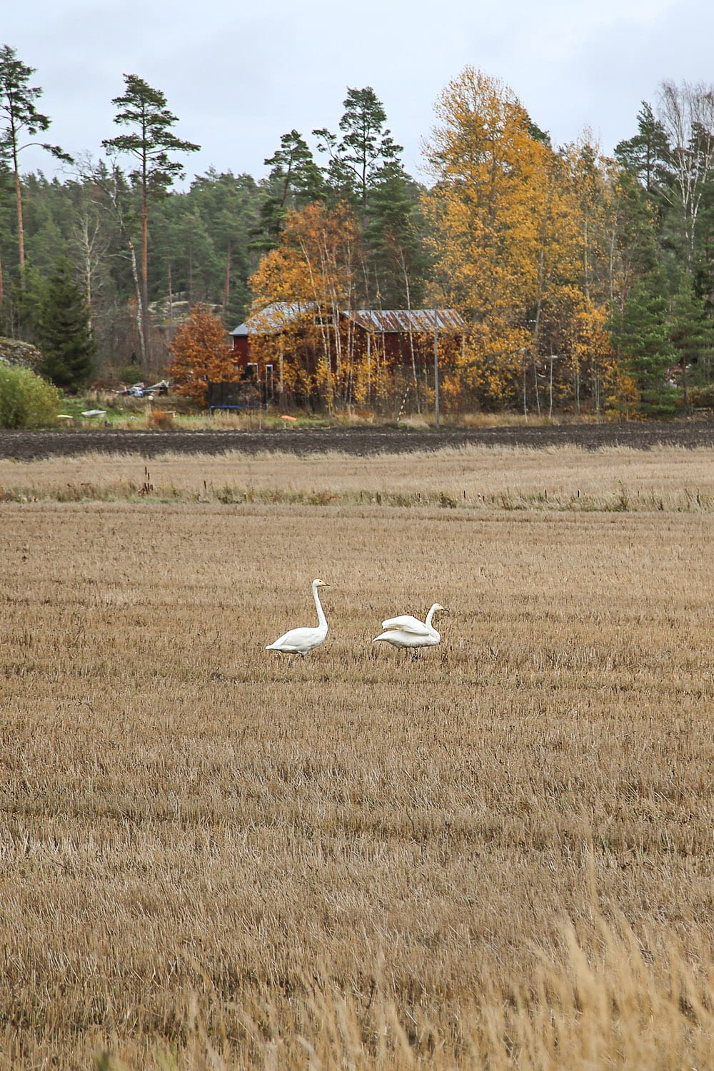 Näin viikon aikana Kemiönsaarella kymmeniä kyhmy- ja laulujoutsenia, jotka hengailivat pelloilla ja rantavesissä. Talveksi useimmat joutsenet lentävät avoveden perässä eteläiseen Ruotsiin, Tanskaan, Hollantiin ja Saksaan, mutta ehkä osa niistä jää leutoina talvina tänne Kemiönsaareenkin. Oli jotenkin rauhoittavaa seurata isojen lintujen lipumista lahdenpoukamissa.