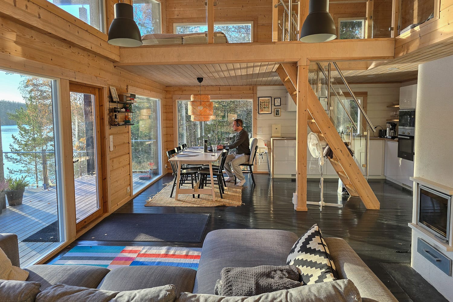 Parasta oli, että Koto House seisoi mäen päällä ja sen isoista ikkunoista avautui näkymä suoraan alhaalla siintävälle järvelle. Välillä tuntui kuin olisimme nukkuneet isossa puumajassa, sillä luonto suorastaan tulvi sisään.