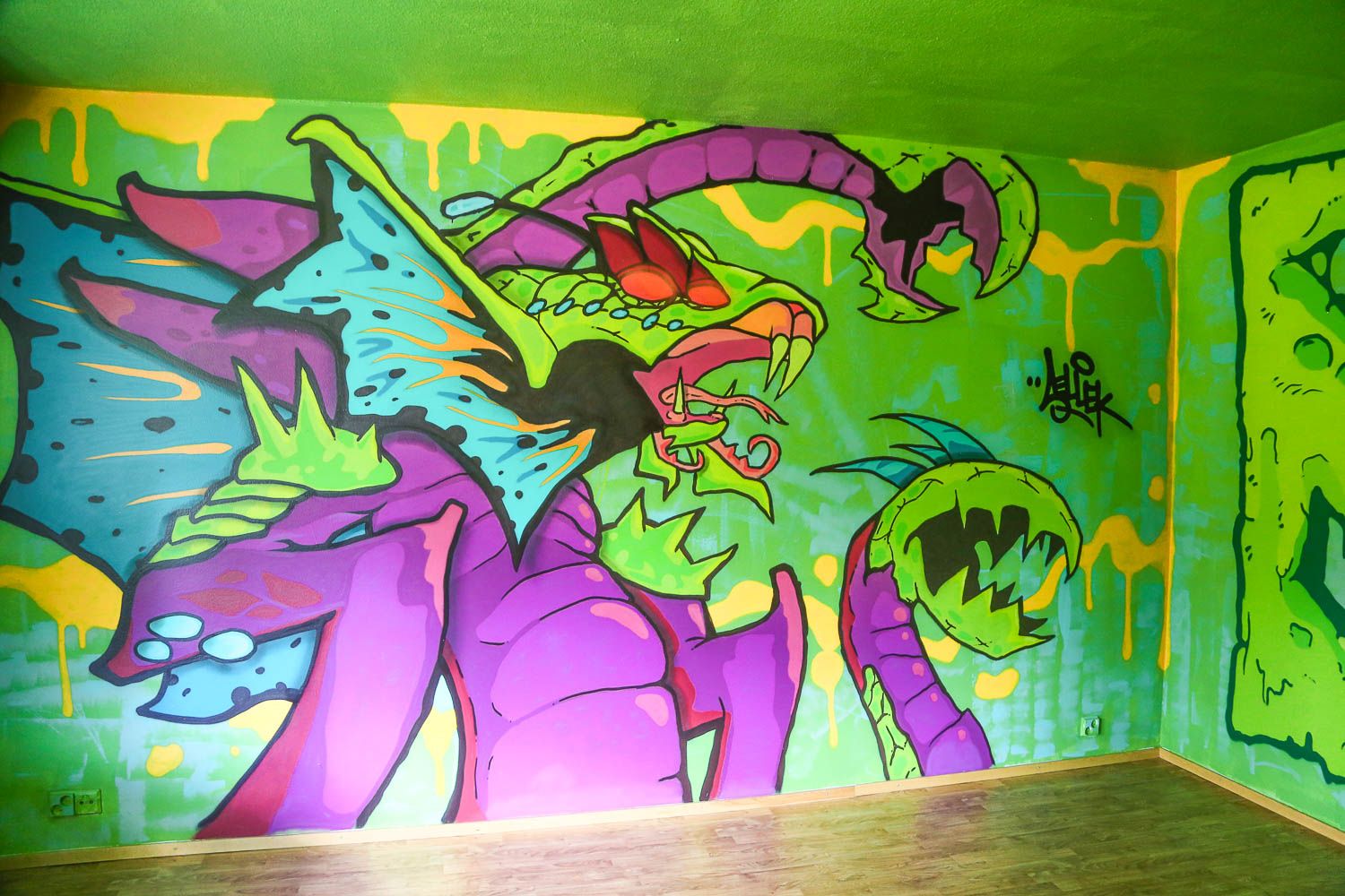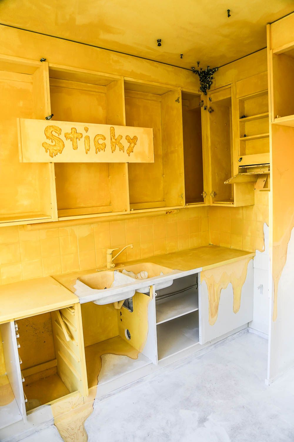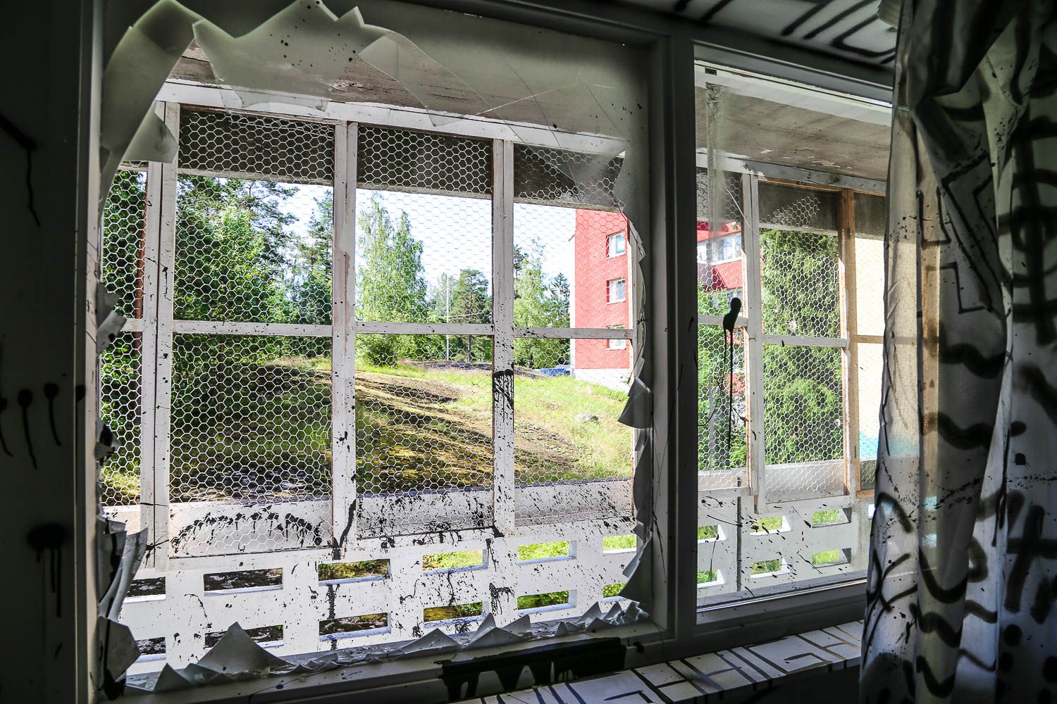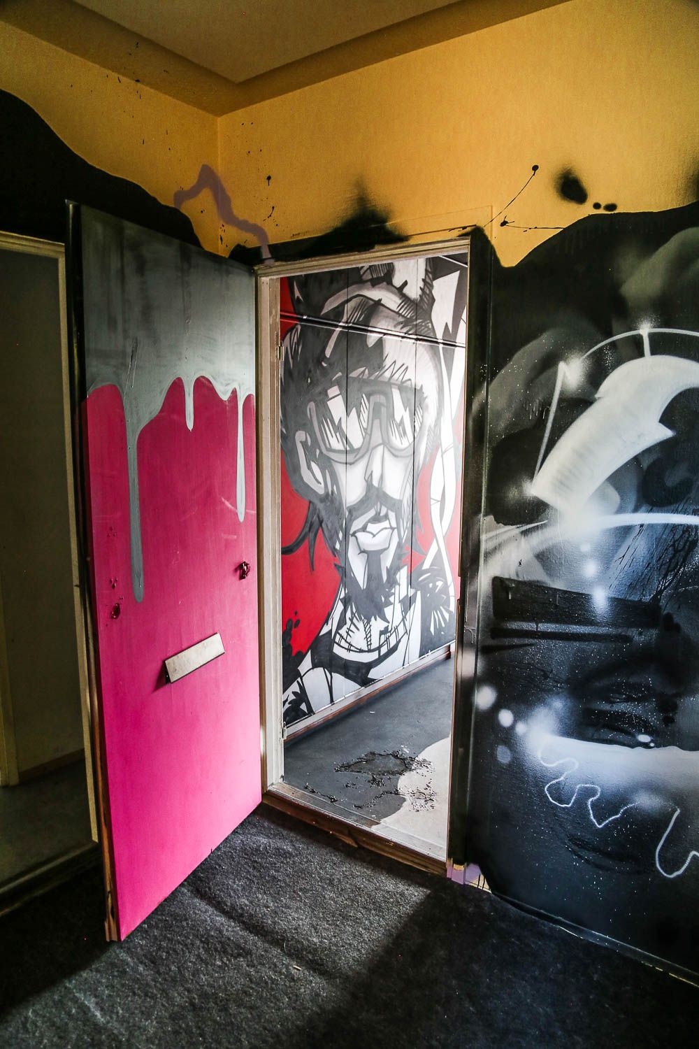 Jos et ole vielä kuullut, mistä on kyse, niin tässäpä informaatiota. Keravan Ahjossa (Moukaritie 4) sijaitsee kerrostalo, joka on niin huonokuntoinen, että se on saanut purkutuomion. Ennen lopullista kuolemaa talo sai kylään 94 taiteilijaa, jotka loivat sisälle elämysgallerian. Teosten kirjo on valtava: kaikkea löytyy uv-maaleilla tehdyistä graffiteista upeisiin muotokuviin ja installaatioihin saakka. Töitä on viidessä kerroksessa ja talon jokaisessa asunnossa.