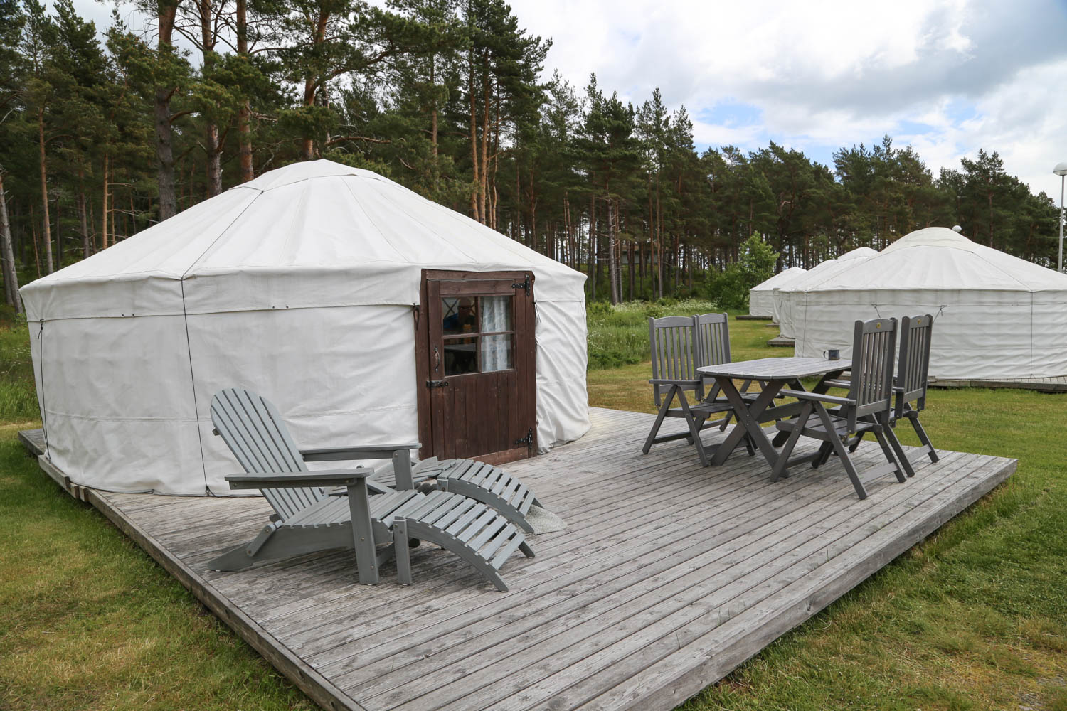 Sanoisin, että täällä viihtyy vaativampikin majoittuja. Lootholmaan on valmistunut uusia luksusmökkejä, joissa on merinäköala, isot terassit ja paljut. Itse yöpyisin kuitenkin mieluiten romanttisissa jurttateltoissa (kuva alimmaisena).