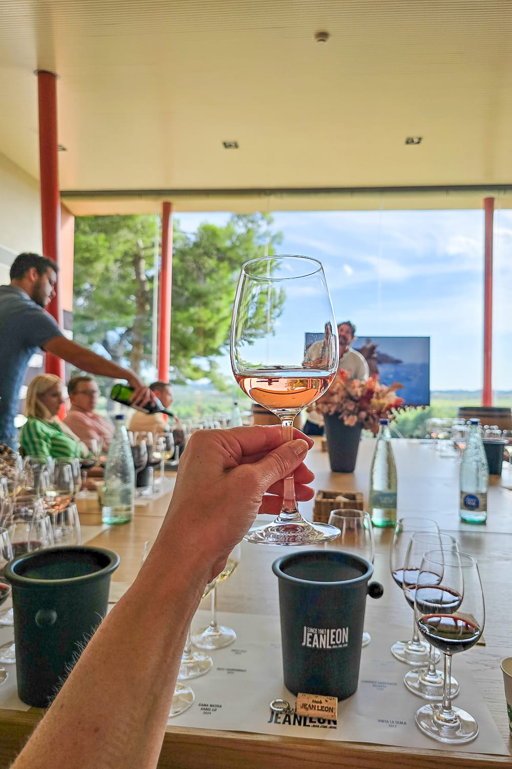 Jean Leonin viinitilalle on Torresilta parinkymmenen minuutin ajomatka (15 km). Kukkulan päällä sijaitseva rakennus on arkkitehtuurisesti todella kaunis. Ympärillä on vehreitä viinitarhoja, kumpuilevaa peltomaisemaa ja reunoilla sinisenä hohkaavat vuoret. Jotain kalifornialaistakin paikassa on, eikä fiilis ole kaukaa haettua: espanjalainen Jean Leon (alkuperäiseltä nimeltään Ceferino Carrión Madrazo) asui 1950-luvulla Los Angelesissa ja verkostoitui Hollywood-tähtien kanssa. Hänen La Scala -ravintolassaan viihtyi koko Hollywoodin kerma Marilyn Monroesta James Deaniin ja Frank Sinatraan.