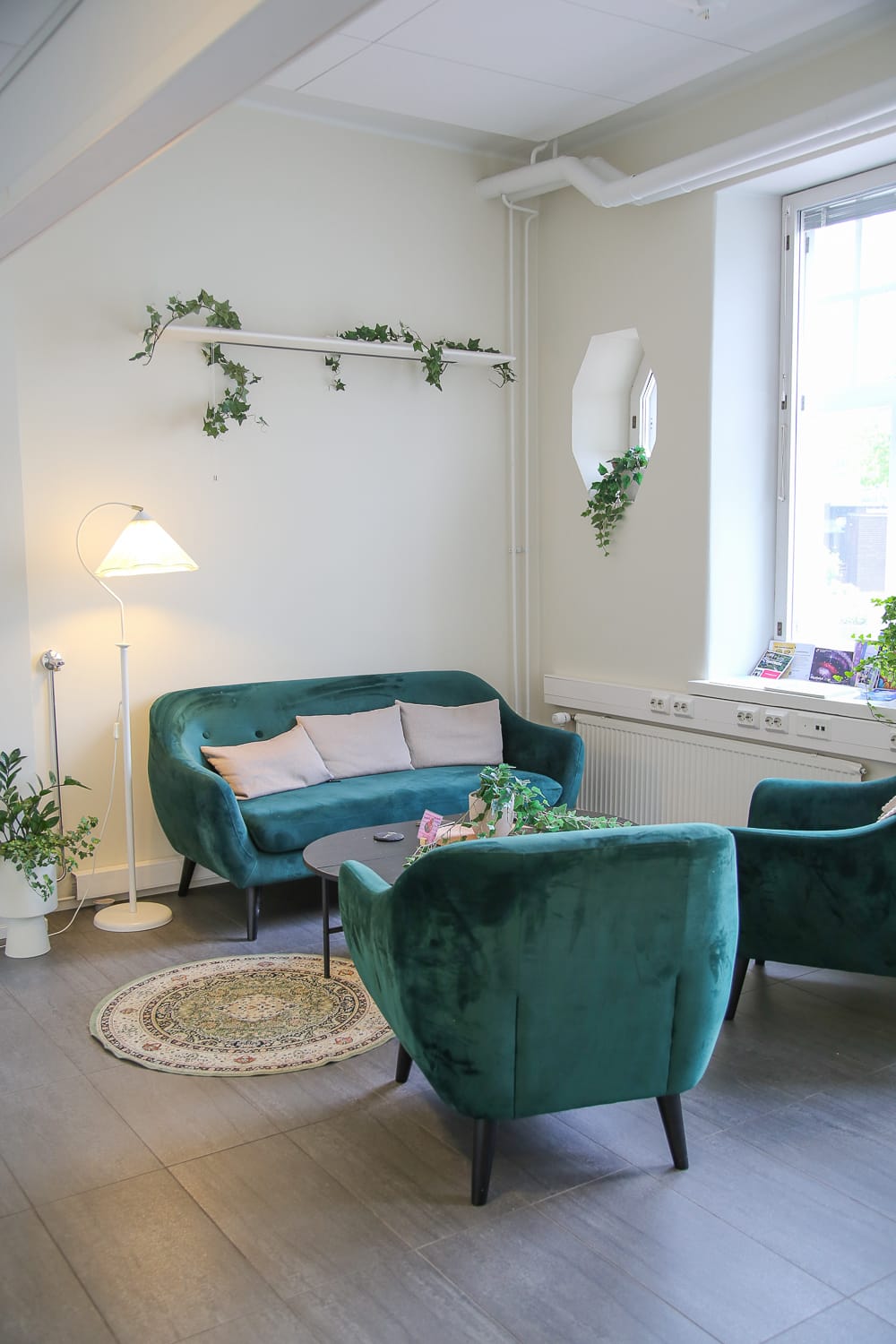 Kolme vuotta sitten avautunut Hotelli Lähde sijaitsee aivan Lappeenrannan keskustassa, sataman äärellä. Hotelli koostuu uudemmasta puolesta ja tuosta yläkuvassa olevasta putiikkihotellista, jossa yövyin. Hotellia pyörittävät sisarukset Marisanna ja Katja Ahola. Samat tarmokkaat yrittäjät vastaavat myös Hotelli Rakuunasta, joka toimii Lappeenrannan vanhalla kasarmialueella. Vietinkin Rakuunassa yhden yön syksyllä 2021 ja tykkäsin kovasti myös siitä.