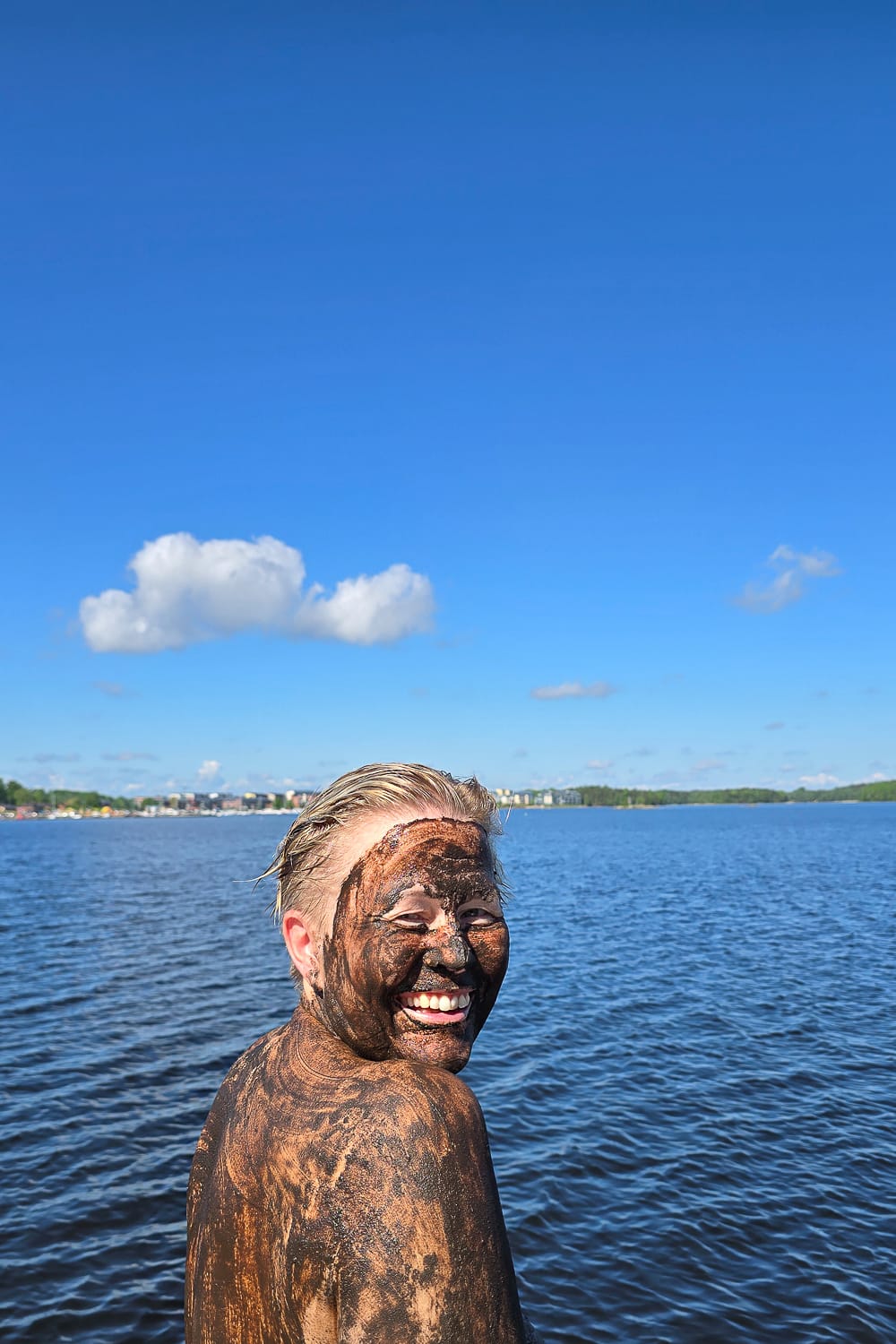 Koska päiväksi ei osunut sekasaunaa, kävin pulahtamassa järvessä nakuna. Loput turpeet puhdistin uinnin jälkeen suihkussa. Iho tuntui turvehoidon jälkeen todella pehmeältä ja kosteutetulta.