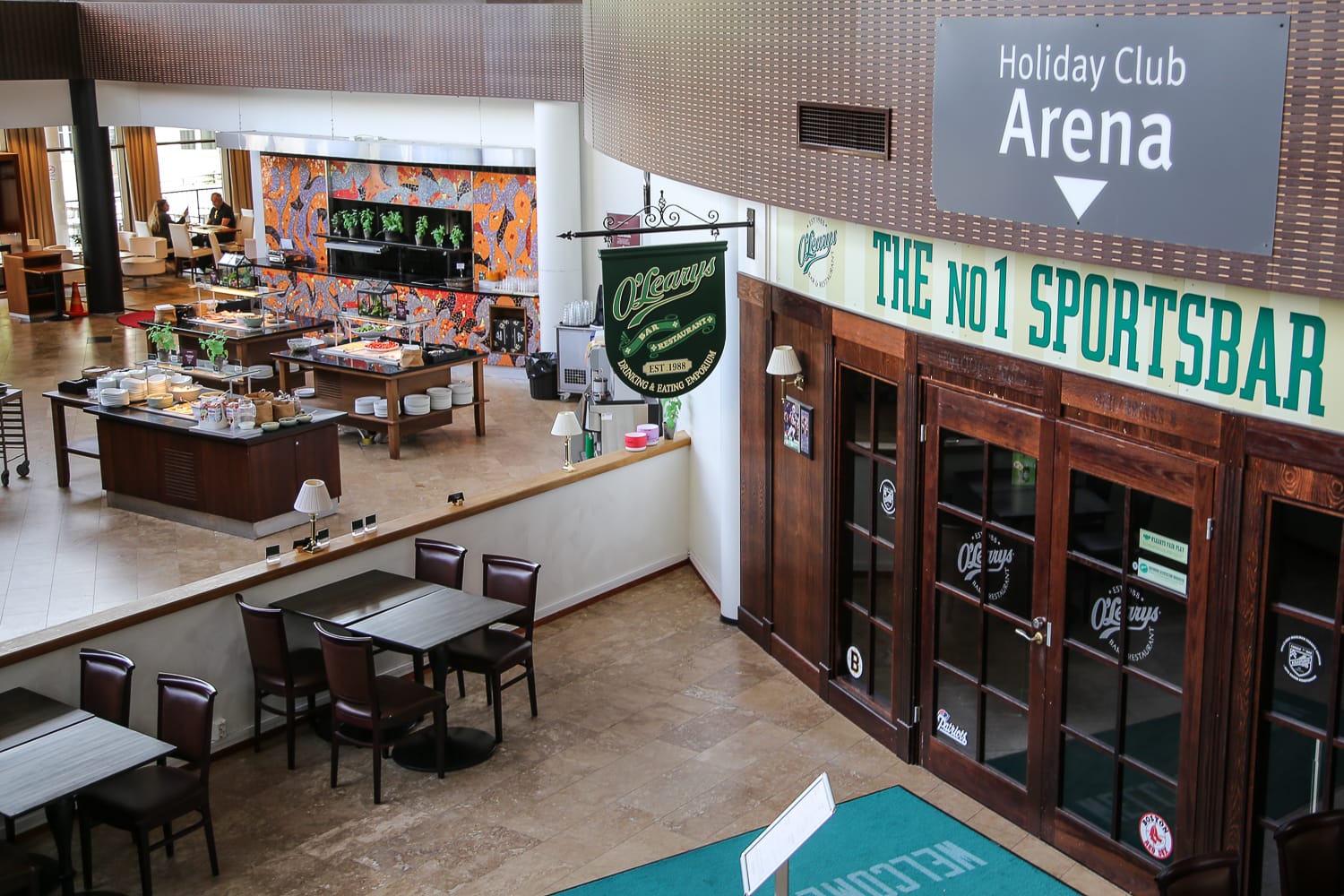 Ruokapaikan voi valita Saimaan Rauhassa neljän ravintolan väliltä, sillä alakerrassa on buffet-periaatteella toimiva Easy Kitchen, sporttibaarina tunnettu O'Learys, Classic Pizza ja Robert's Coffee. Buffet-aamiainen kuuluu huoneen hintaan ja se tarjoillaan Easy Kitchenissä. Runsaan kana-caesarsalaattini hain O'Learysista.