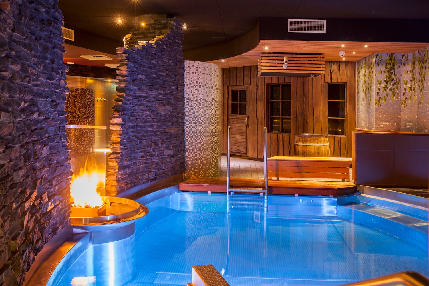 Suosikkini on kylpylän saunamaailma, jonka tunnelmavalaistus ja rauhoittavampi äänimaailma on enemmän mieleeni. Hyvällä kesäkelillä kannattaa käydä muuten katsastamassa myös kylpylän sun deck, jossa voi pötkötellä aurinkotuoleilla, pulahtaa altaisiin ja ottaa löylyt hirsisaunassa.