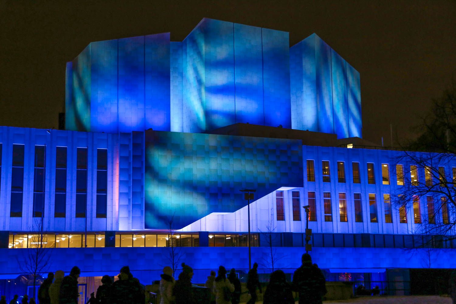 Finlandia-talo on kuin luotu siniselle valolle. Ramboll Valostudion H2.O-teosta katsellessa ja kuunnellessa tuntui kuin olisi kellunut valtameren keskellä. Ja oikeaan fiilis osuikin: teos kertoo vedestä ja muistuttaa, että se on ehtyvä luonnonvara ja meille elintärkeä. Sijainti toimi muuten kivasti: vaikka väkeä oli liikkeellä Luxissa eilen hurjasti, Finlandia-talon takapiha on niin iso, että teosta pääsi katsomaan kaikessa rauhassa kauempaakin.