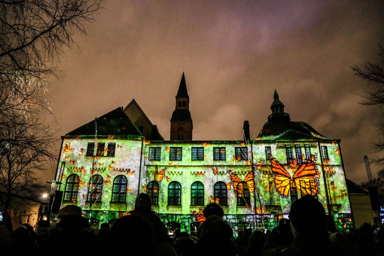 Luxissa on tänä vuonna harmittavan vähän isoille seinäpinnoille heijastettavia tarinallisia videomäppäyksiä. Siksi valoreitin päätepisteessä odottanut Shelter Seekers ilahdutti. Teos ottaa kantaa siirtolaisuuteen ja ilmastonmuutokseen uhanalaisten monarkkiperhosten avulla. Haasteita aiheutti hiukan Kansallismuseon ahdas piha, joka pakkautui täyteen väkeä. Toisaalta suojaisa tila loi intiimin tunnelman.