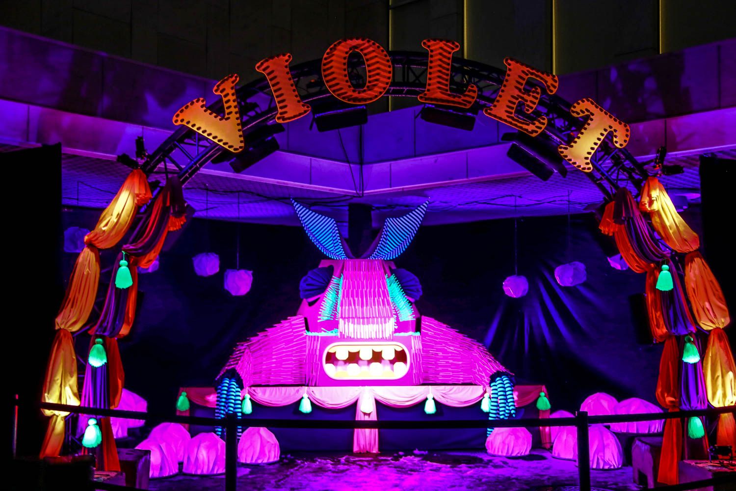Finlandia-talon etupihalta löytyvä mörisevä valonsyöjäotus on Luxin sympaattisin teos, joka oli yleisötungoksesta päätellen monen muunkin suosikki. Violetin tarina on hiukan surullinen: se on joutunut vangiksi sirkukseen. Vähän olisi tehnyt mieli käydä otusta paijaamassa.