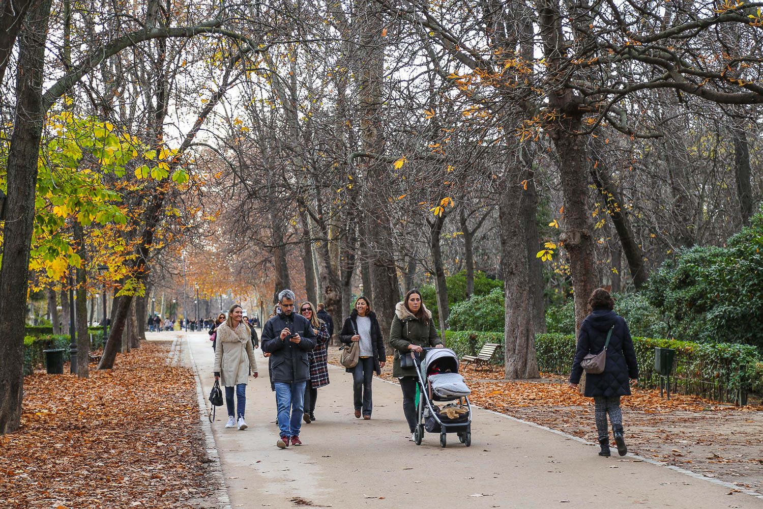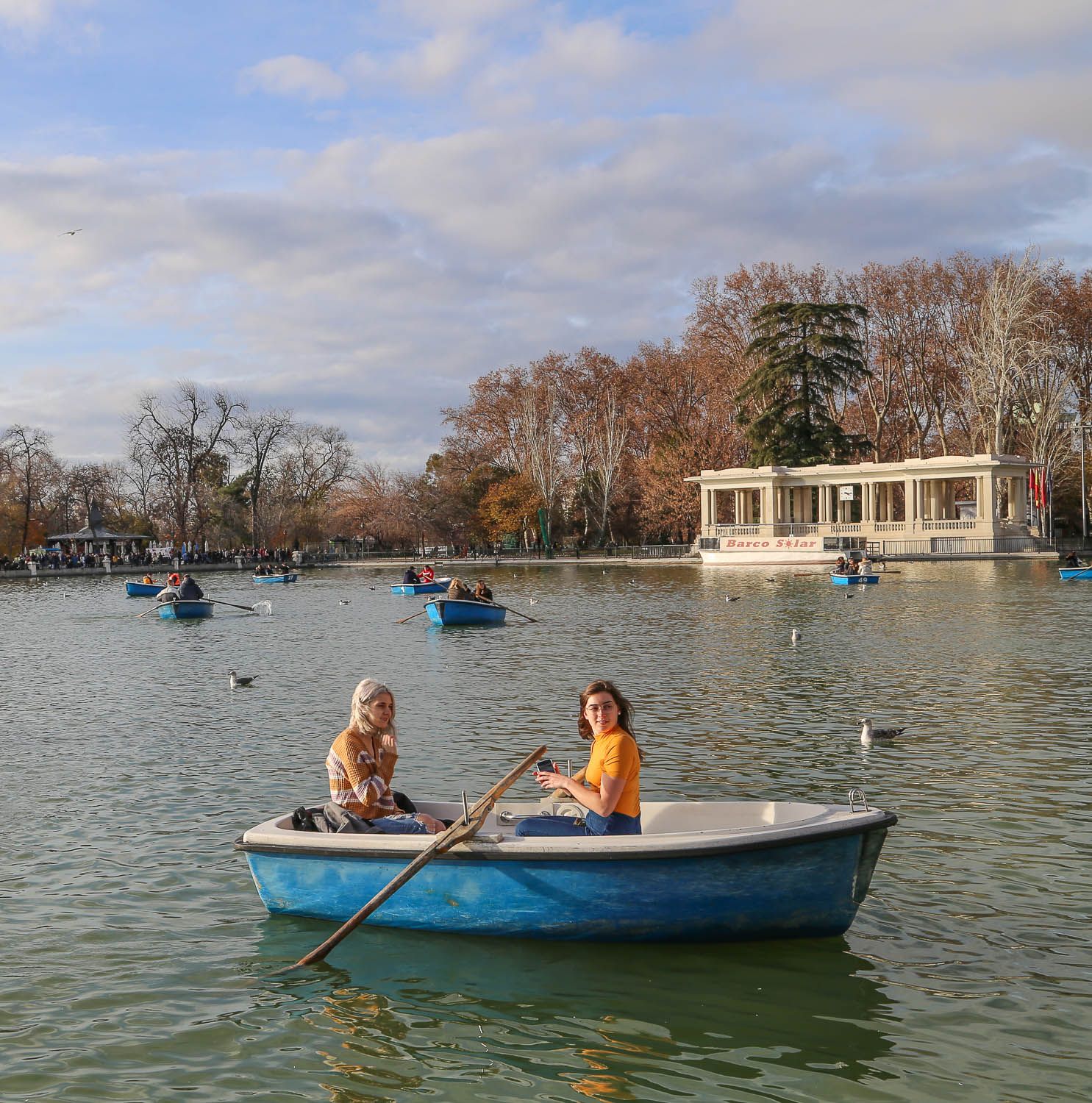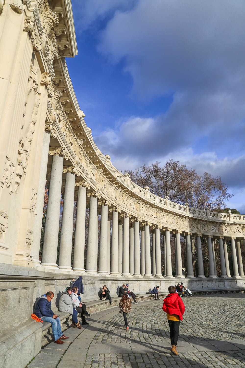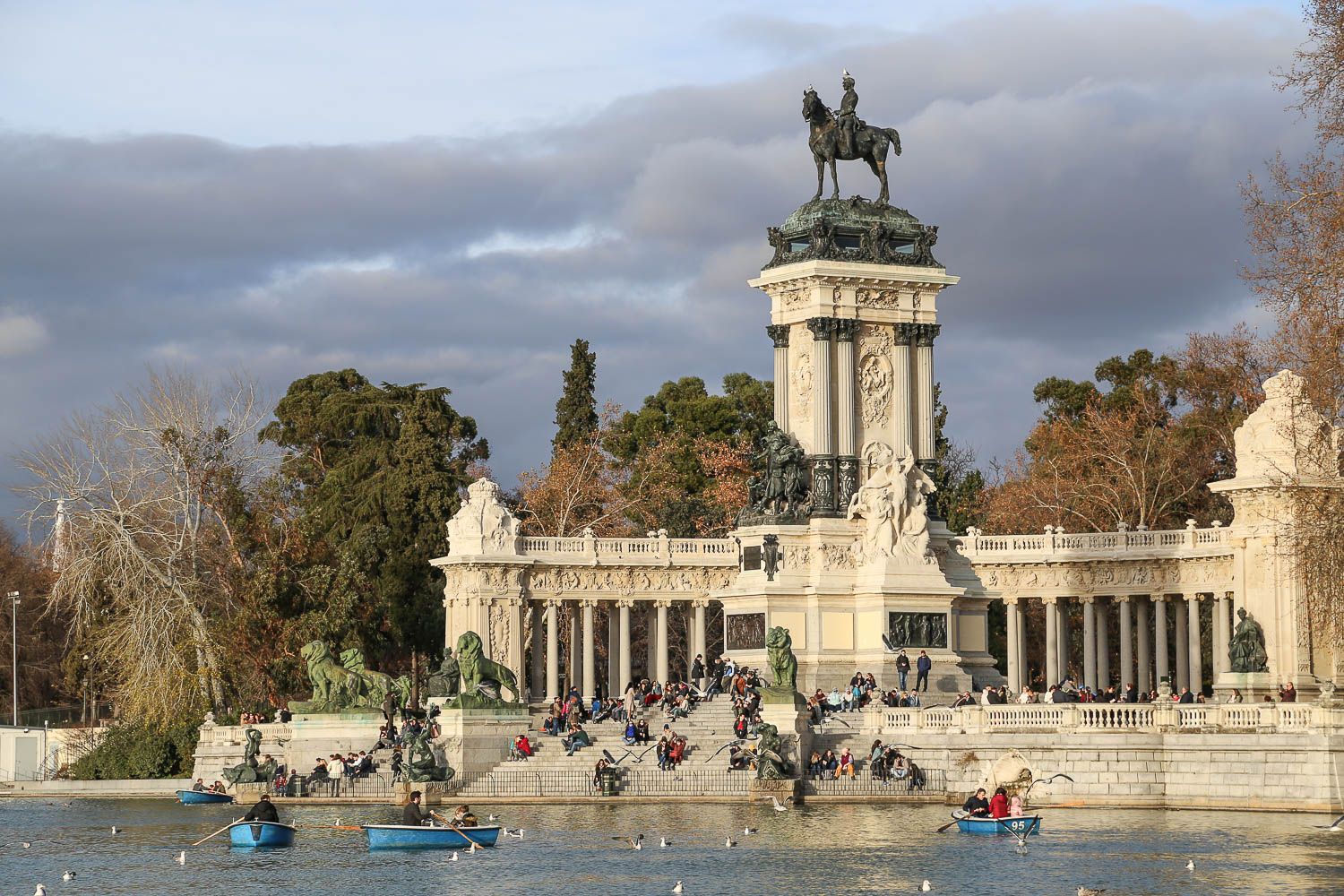 Meillä on ollut tapana etsiytyä jokaisessa suurkaupungissa aina puistoihin, koska niissä on kiva vetää henkeä kaiken hälinän keskellä. Samaa harrastavat paikallisetkin viikonloppuisin. Madridin keskusta-alueen suurin puisto on 125 hehtaarin kokoinen El Retiro, jonne eksyimme oikeastaan sattumalta Salamancan kaupunginosassa seikkailtuamme. Täällä sijaitsi ennen myös kuninkaan palatsi, mutta se tuhoutui Napoleonin sotien aikana. Upea El Retiro on yhä: sen ehdoton katseenvangitsija on kuningas Alfonso XII:n muistomerkki, jonka portaille ja penkeille ihmiset kokoontuvat istuskelemaan. Puiston keskelle on rakennettu tekojärvi, jossa voi käydä soutelemassa (venevuokra 5,80 euroa tunnilta).