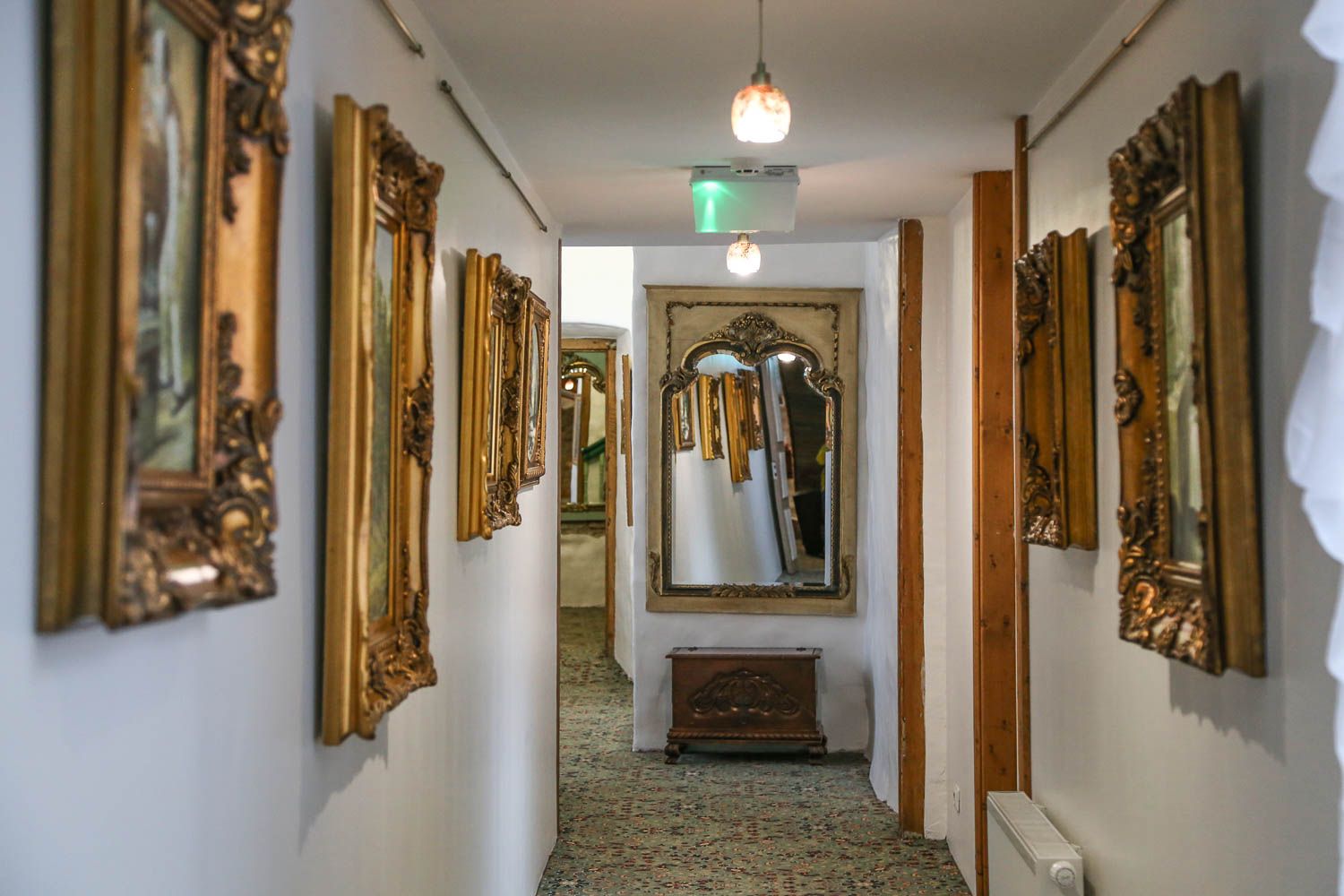 Olavissa saa varautua eksymään ainakin pari kertaa, jos ei malta lukea seinien opastekylttejä. En ole ikinä ollut näin sokkeloisessa hotellissa. Kapeat ja matalat käytävät luikertelevat mutkitellen kuin labyrintissa. Takuuvarma hitti lasten keskuudessa, mutta kyllä täällä teki mieli itsekin kurkata kulman taakse. Aina löytyi uusi salakäytävä tai aula, joka oli sisustettu ikivanhalla pianolla, kirjoituskoneella, nojatuoliryhmillä ja kirjoilla.