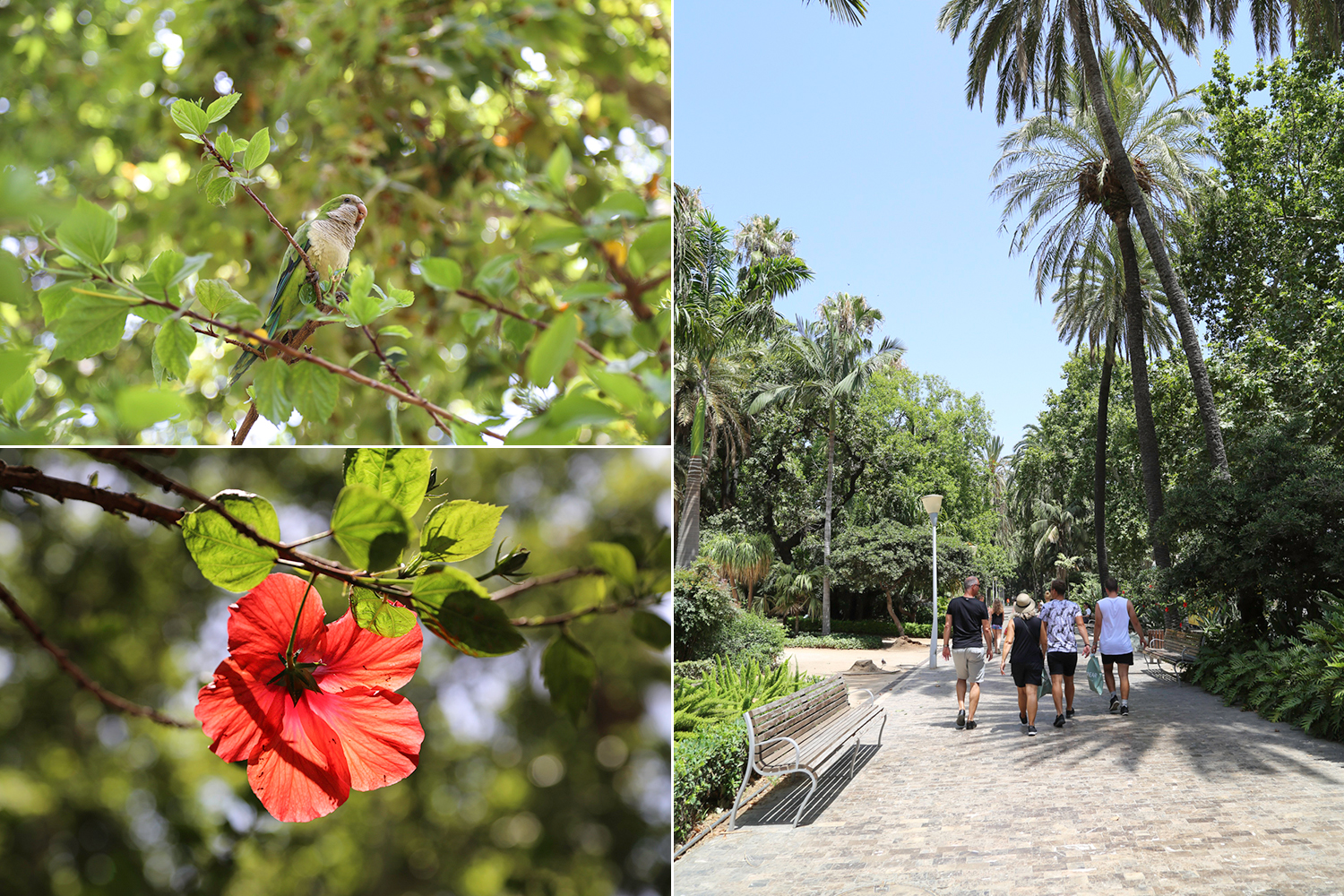 Aah, että sitten rakastan puistoja! Parque de Malaga oli täynnä eksoottisia kasveja ja kesyjä papukaijoja.