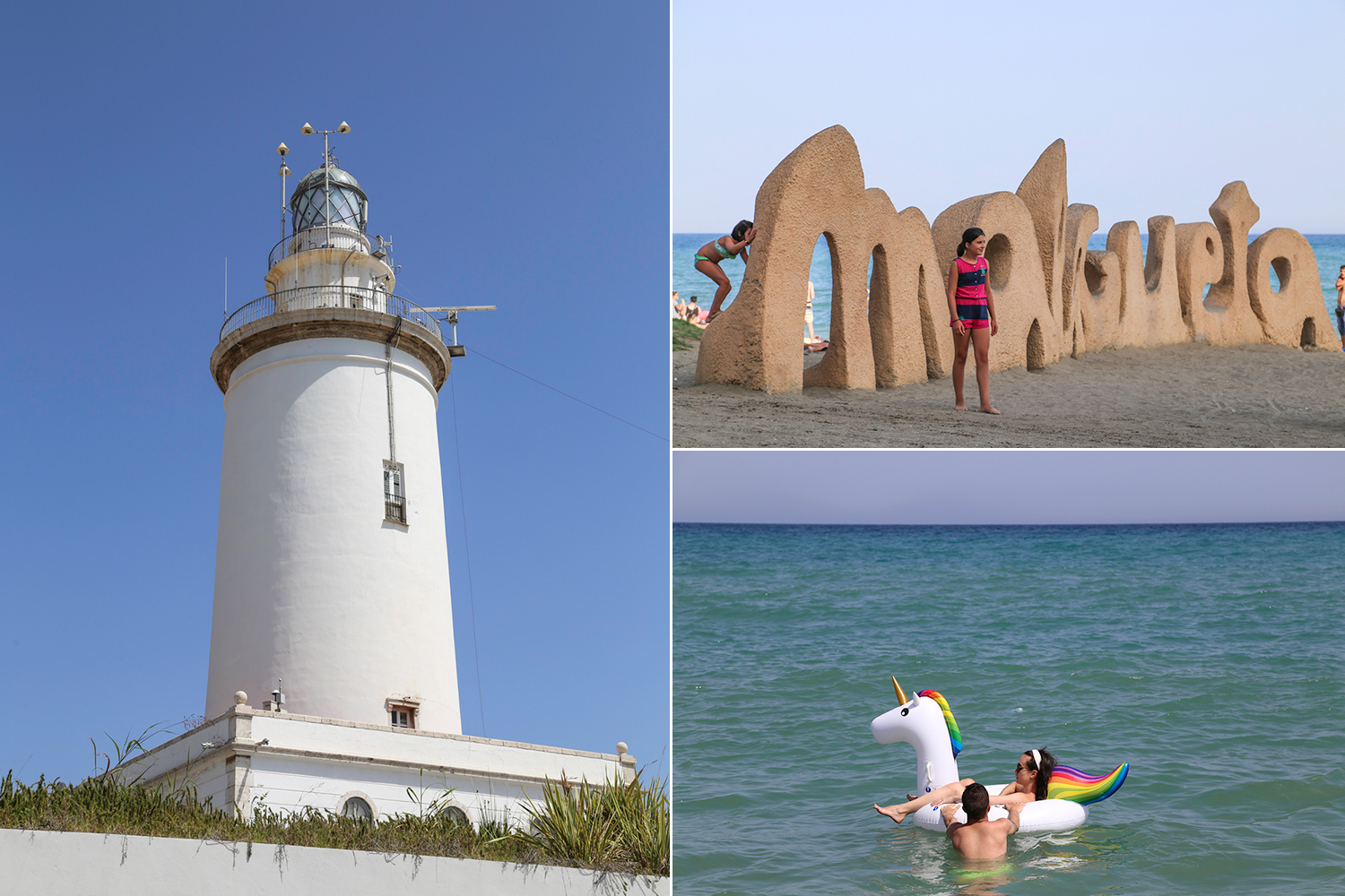 Malagan kaunis majakka sijaitsee sataman ja Malagueta-rannan välissä.