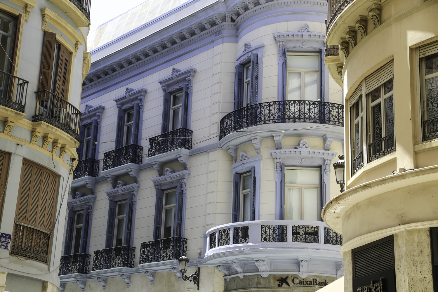 Malagan rakennuskanta poikkeaa hyvällä tavalla Aurinkorannikon pienemmistä kohteista, kuten Fuengirolasta ja Torremolinoksesta. Toki täältäkin löytyy 1960- ja 1970-lukujen rujoja kerrostaloja, mutta ydinkeskustan arkkitehtuuri on upean koristeellinen. Kiva oli huomata, että vanhoista rakennuksista pidetään myös huolta kunnostamalla ja maalaamalla niitä.