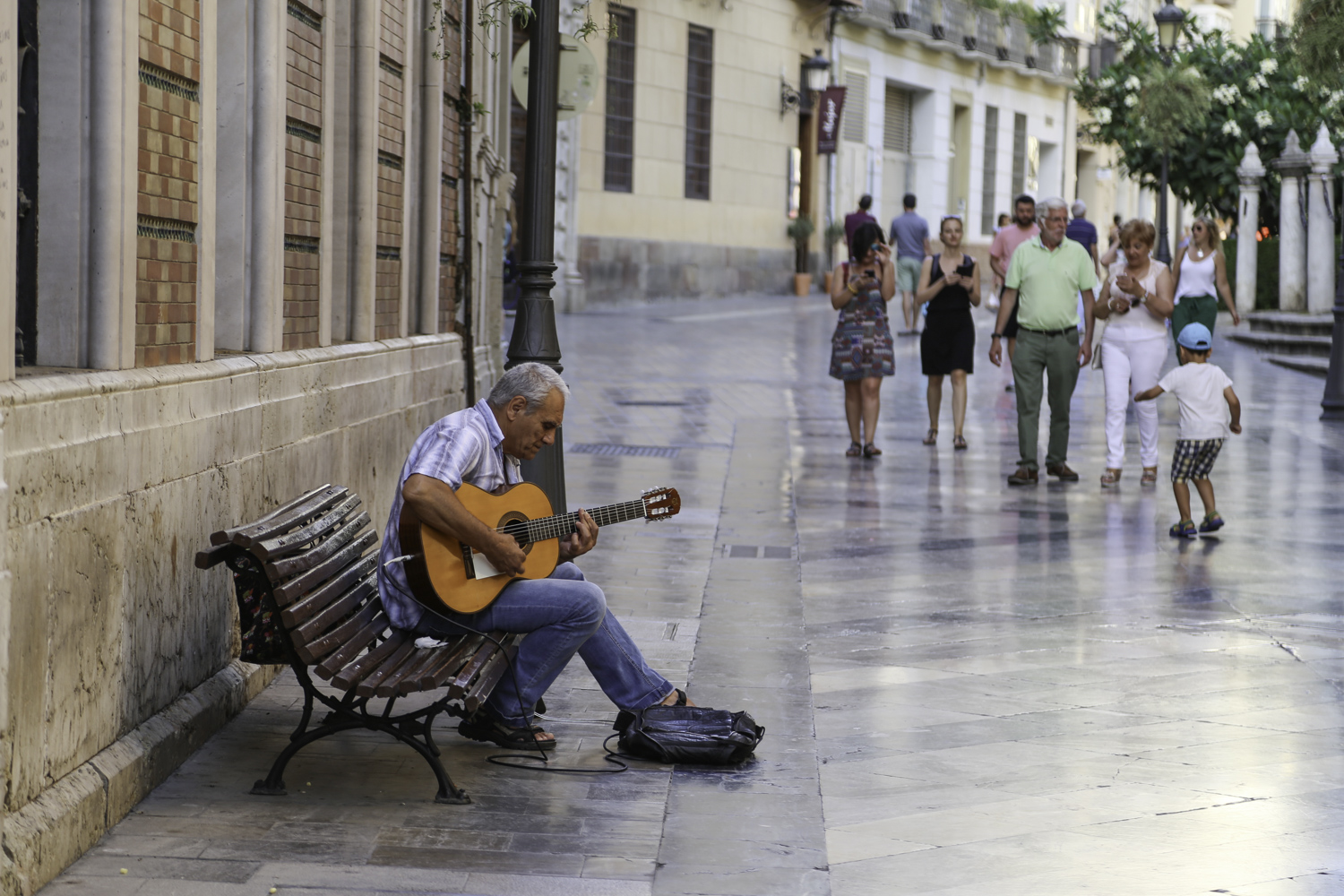 Katusoittaja viihdytti espanjalaisin sävelin.