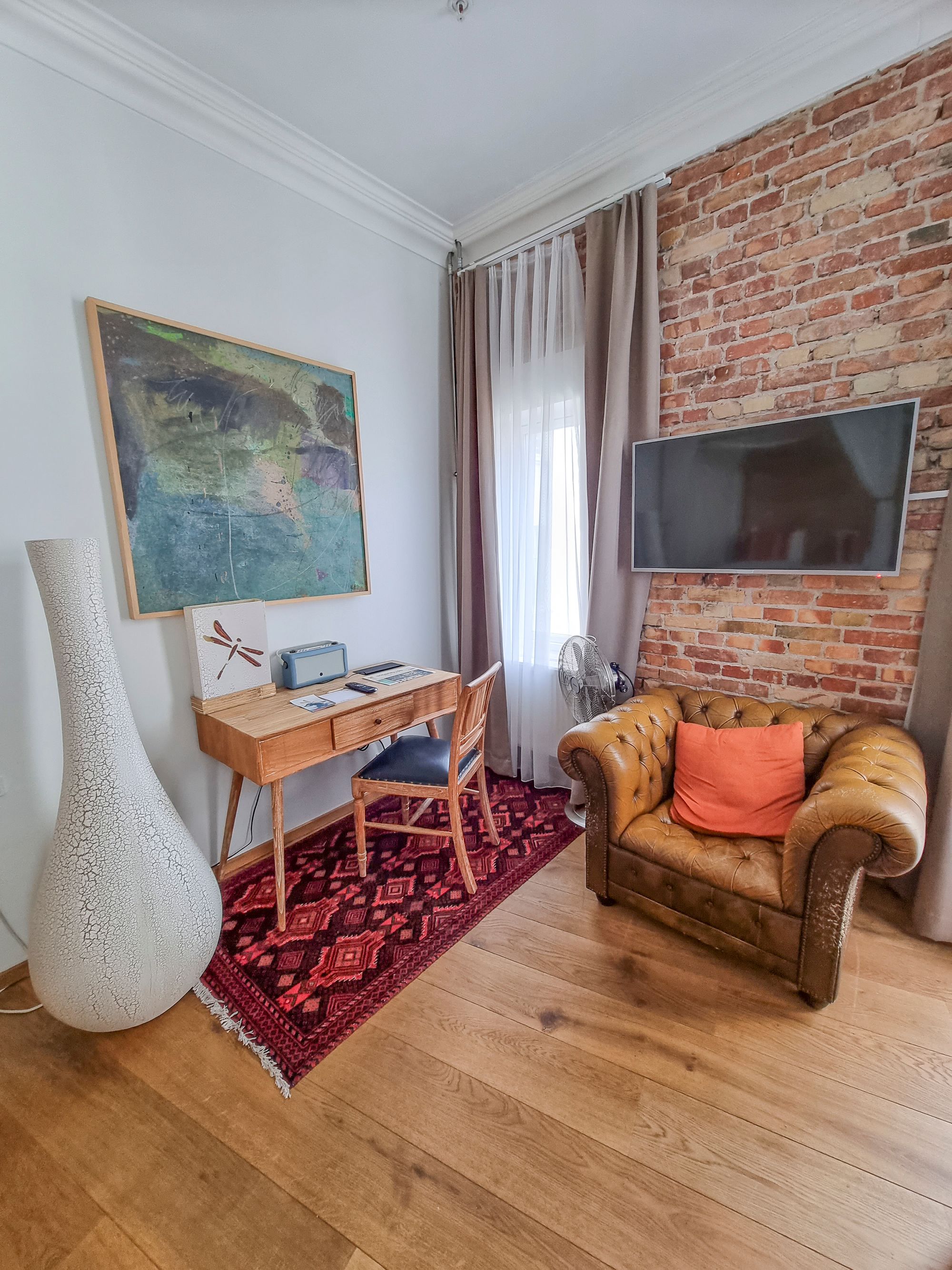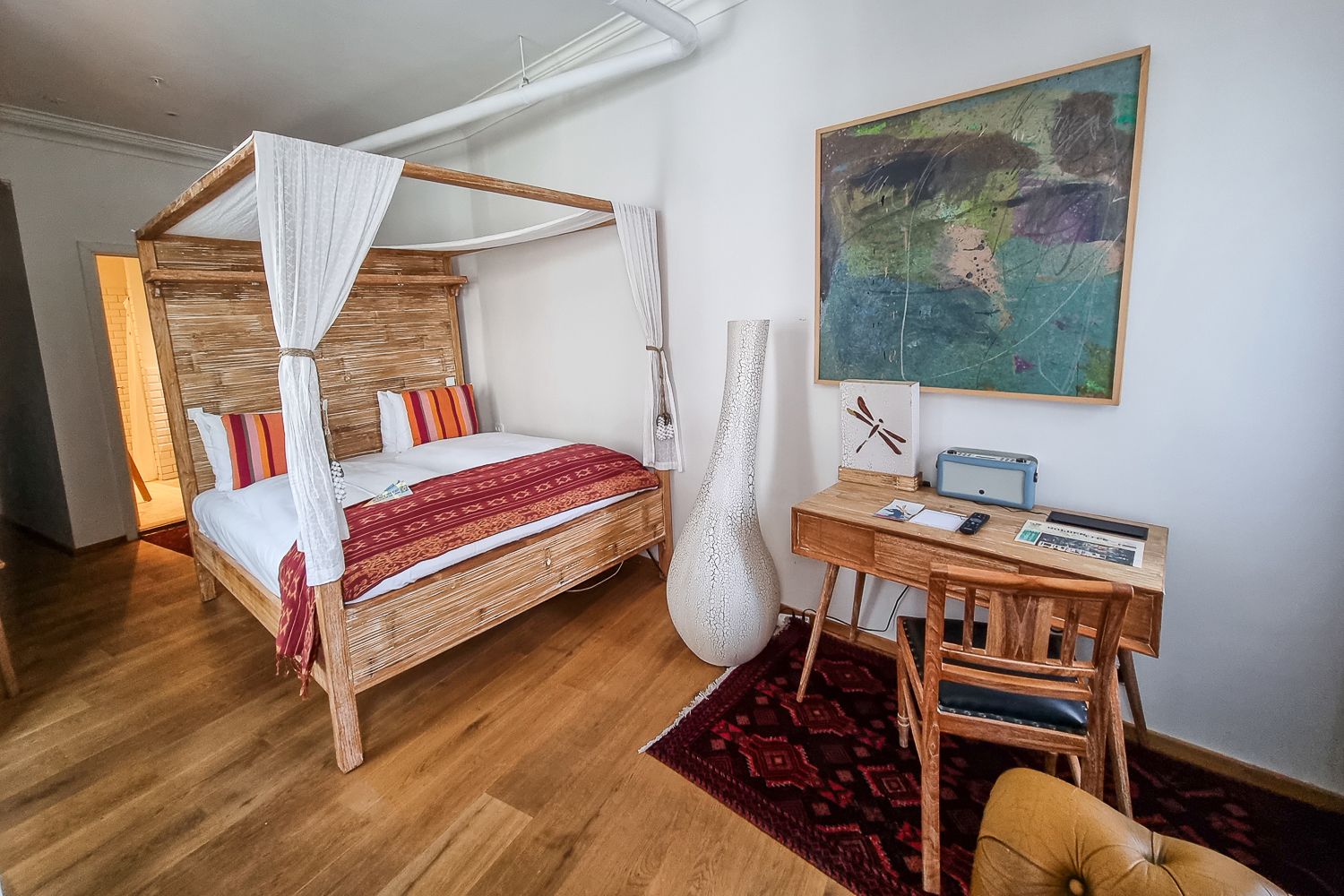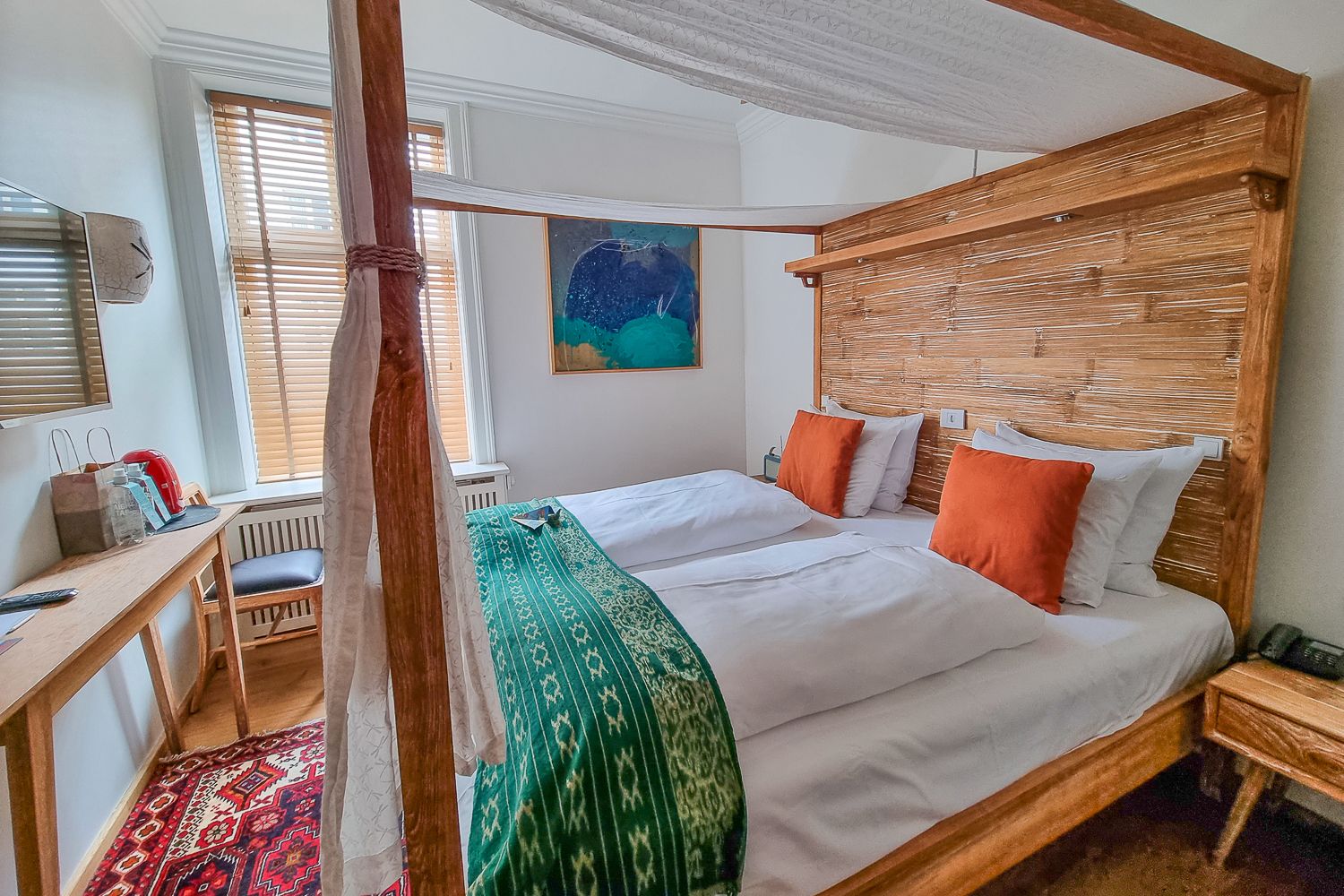 Eikö näytäkin suloiselta hotellihuoneelta? Se tosiaan oli värikäs, kodikas ja persoonallinen. Yksi tarpeellinen ominaisuus kuitenkin puuttui.