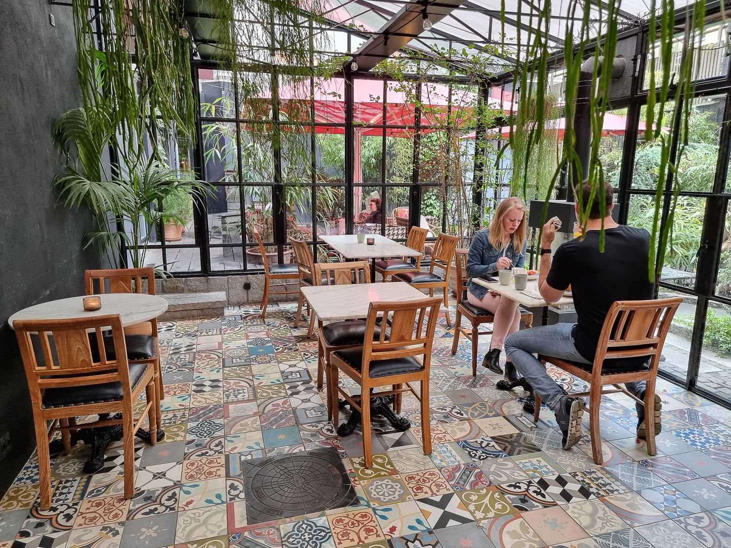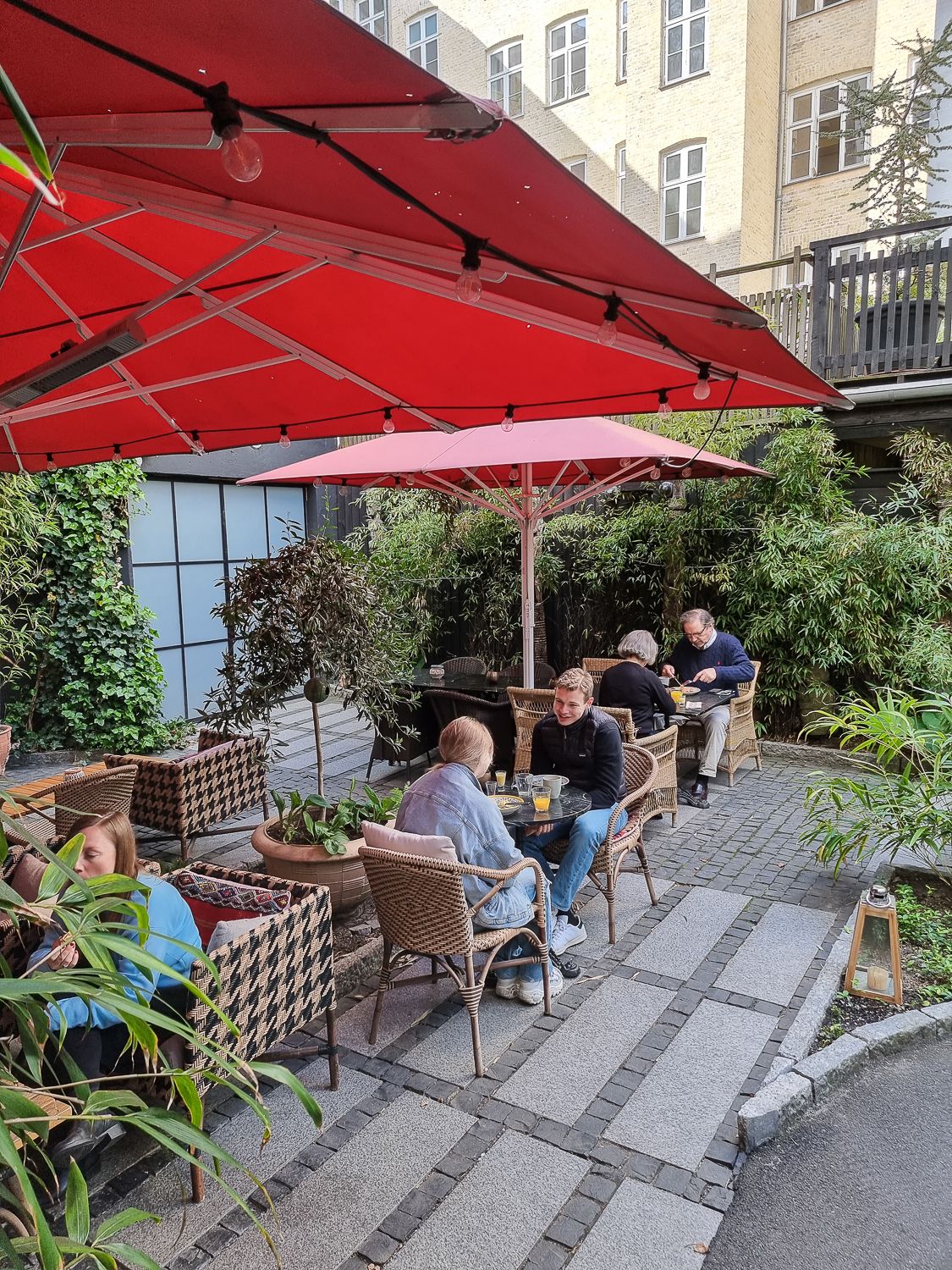 Kaunis miljöö on puoliruokaa. Axel Guldsmedenissä aamiaista voi herkutella vehreällä sisäpihalla, isolla lasikuistilla tai varsinaisessa aamiaisravintolassa.