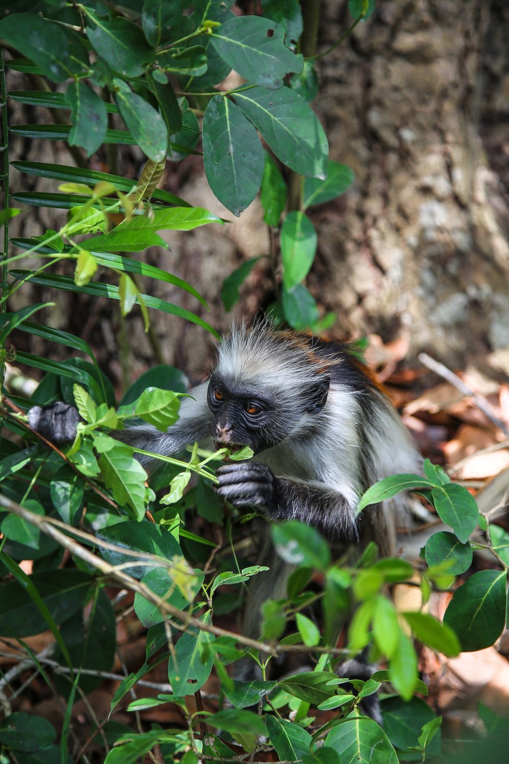 Sansibarin eteläpuolella sijaitseva Jozanin kansallispuisto on elämys, vaikkakin hikinen sellainen. Mykistävintä on, että 50 neliökilometrin kokoinen alue lepää osittain vanhan koralliriutan päällä. Valkoisia koralleja näkyykin reiteillä pitkin matkaa. Pääosin metsä koostuu mangrovepuista ja saniaisia muistuttavista pensaista. Jozani on mm. villisikojen, antilooppilajien, kameleonttien, trooppisten lintujen ja sadan perhoslajin koti. Ainutlaatuisin asukas on sansibaringueretsa (yläkuvassa), joita asuu vain tällä saarella noin 1500 yksilön verran. Mekin näimme punertavaselkäisen apinan ihan vierestä. Sympaattinen oloinen kaveri!