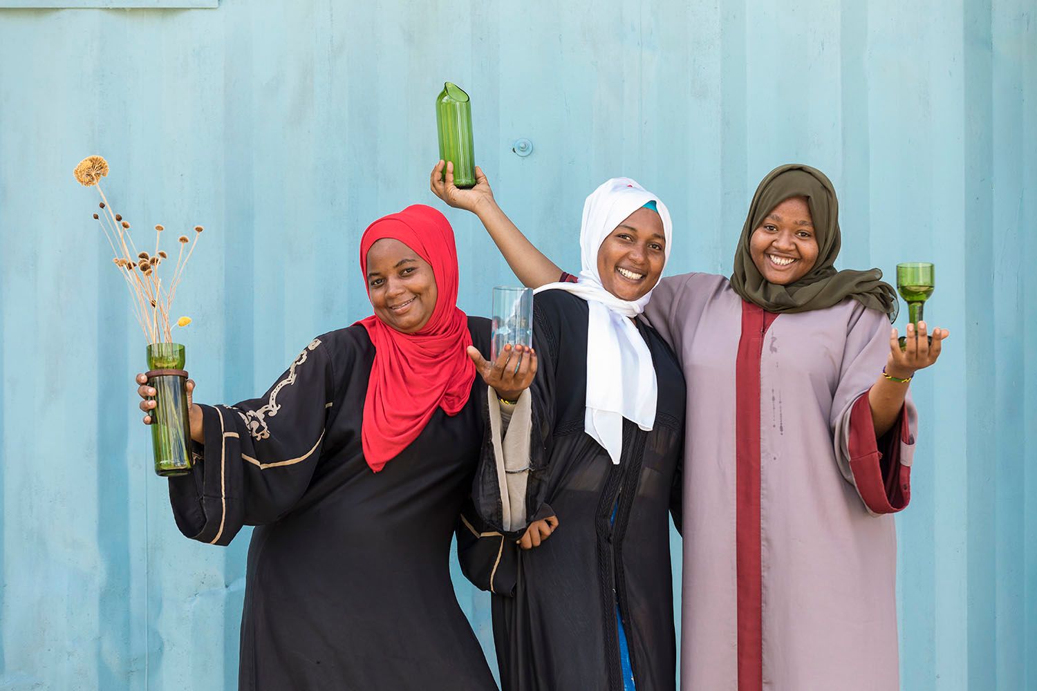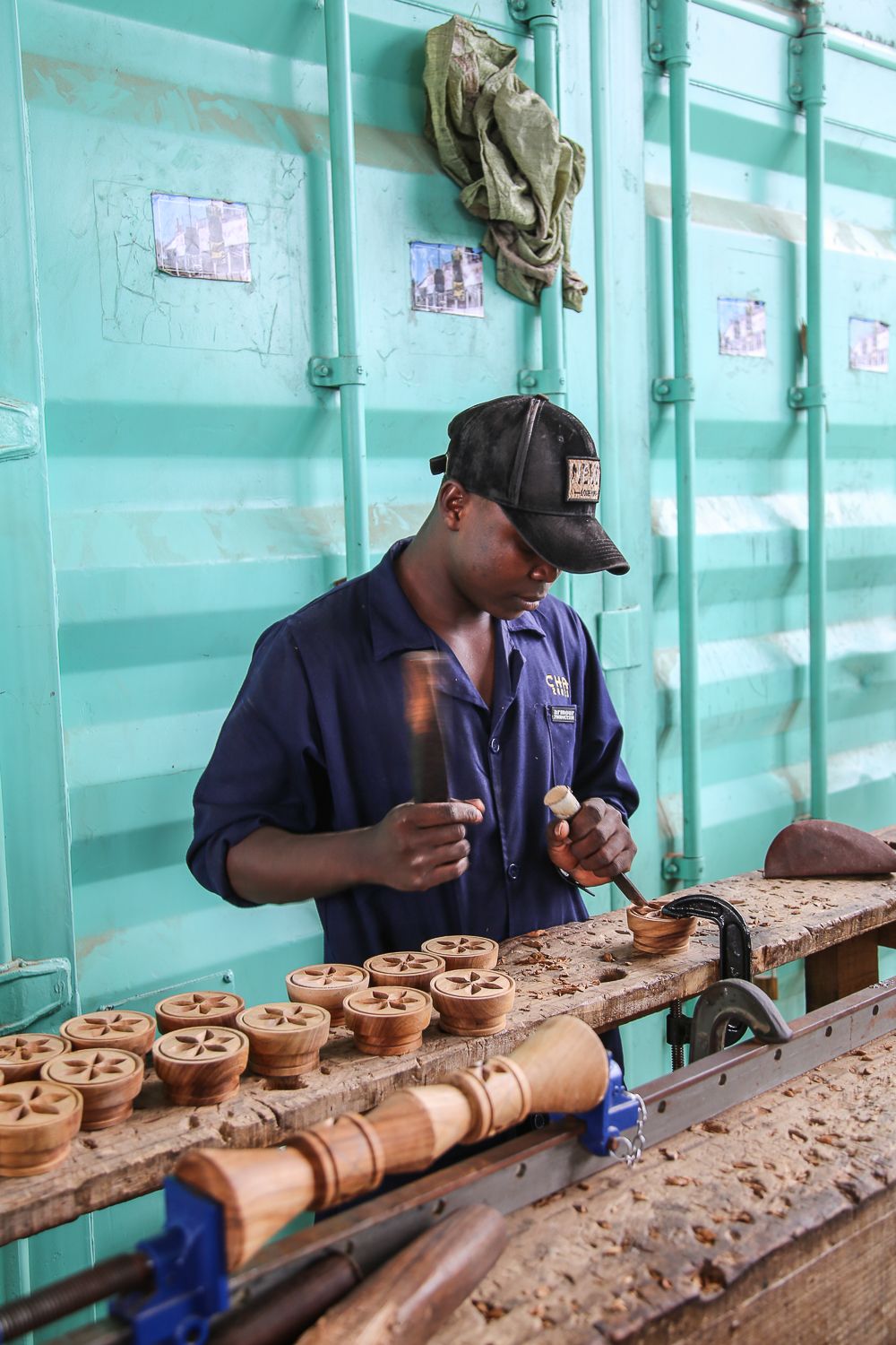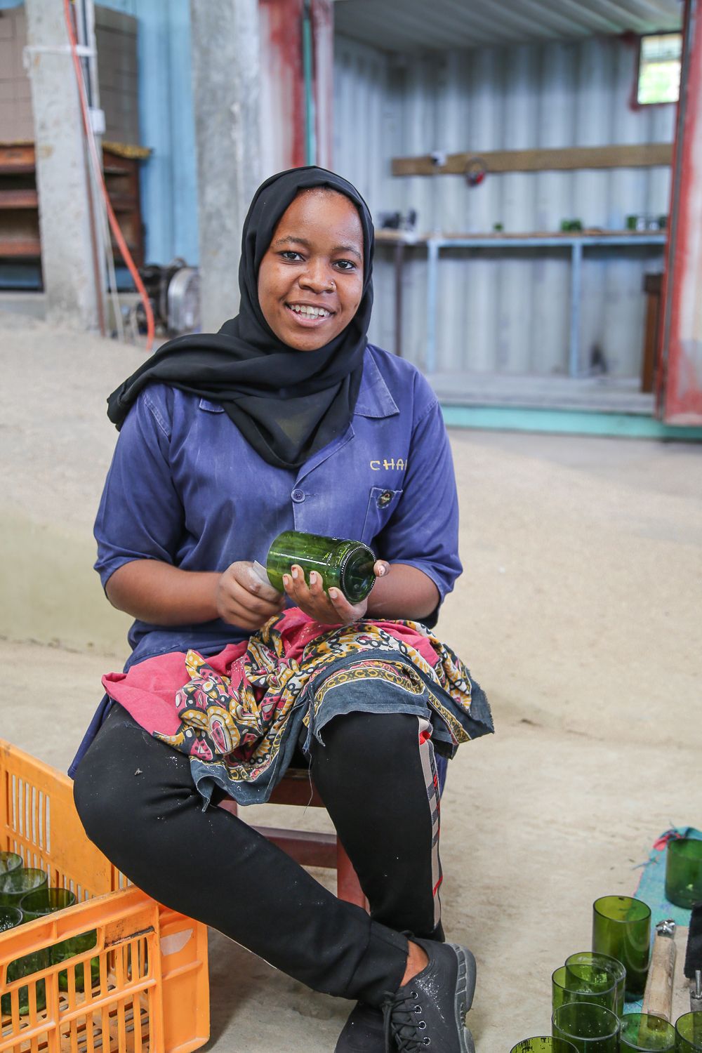 Vierailimme Mndossa (aivan mausteplantaasien vieressä muuten) sijaitsevassa Chakossa, joka on siis avoinna myös yleisölle. Teräskonteista rakennetussa kierrätyskeskuksessa on töissä 50 paikallista, jotka nikkaroivat pajalla lasia, muovia ja puuta. Tämä onkin Chakon toinen missio: kouluttaa varsinkin nuoria ja erityisesti naisia, joiden on vaikea löytää työtä Sansibarilla. Lisäksi chakolaiset kiertävät kouluissa ja kyläyhteisöissä lisäämässä ympäristötietoisuutta.
