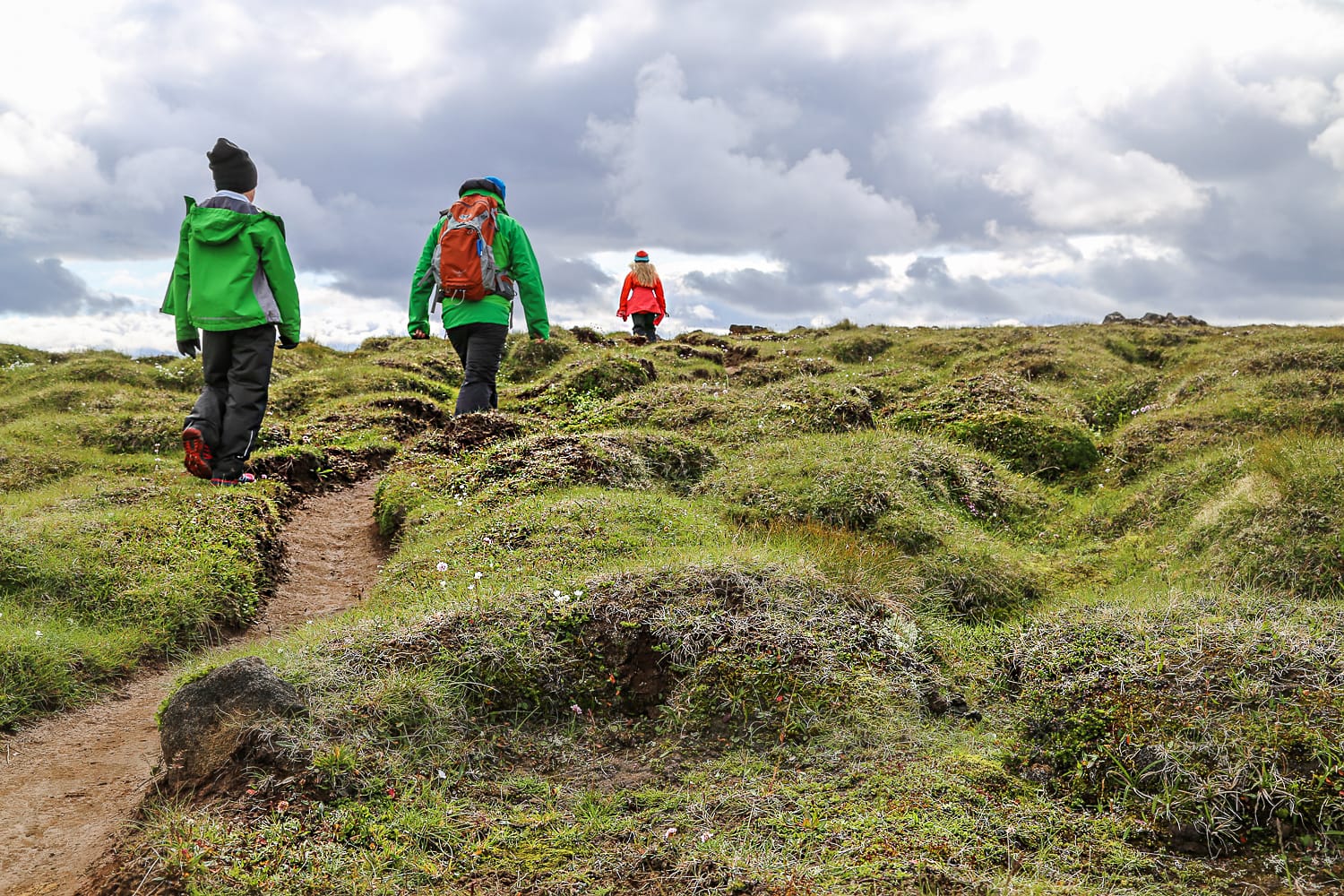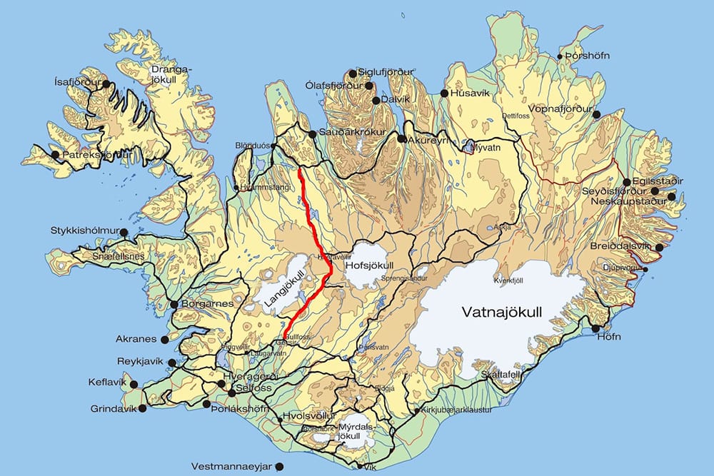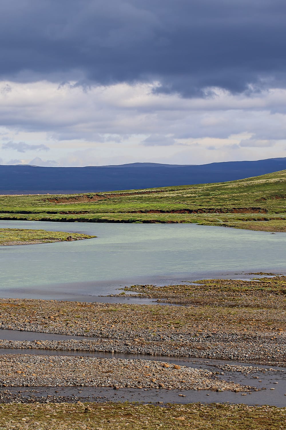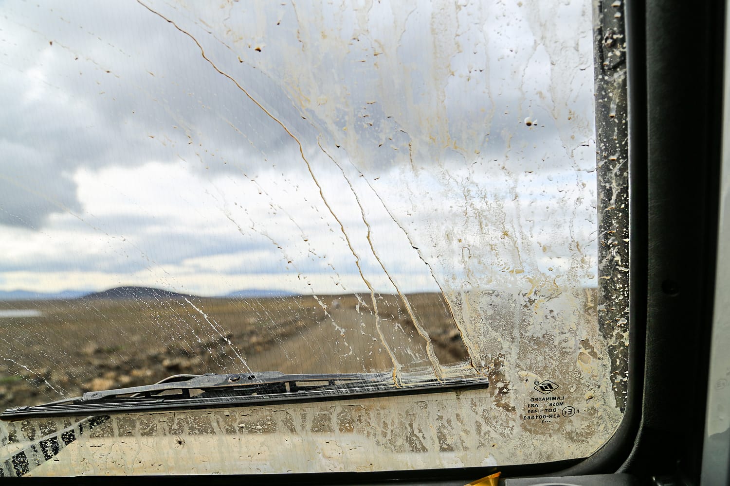Kartalla sadan kilometrin siivu ei näyttänyt pitkältä. Se onkin tyypillisin Islannin-vitsaus: mittasuhteet vääristyvät, kun joka puolella riittää aavaa maisemaa silmänkantamattomiin. Valitsimme Geysiristä sisämaahan päin lähtevän f35:n eli Kjölur-reitin, joka muuttui jo 30 kilometrin jälkeen tasaisesta hiekkatiestä jättikraaterien silpomaksi soraväyläksi. Vaikka ajoimme valtaosan matkasta kävelyvauhtia, vatsalihakset joutuivat töyssyissä koville. Sisämaan F-tiet ovatkin kiellettyjä henkilöautoilta, joiden alustat ja jousitukset hajoavat helposti kovassa rääkissä. Land Rover ei pienestä hätkähtänyt, mutta silti otimme vuokrapelille soravakuutuksen sinkoilevien irtokivien varalta.