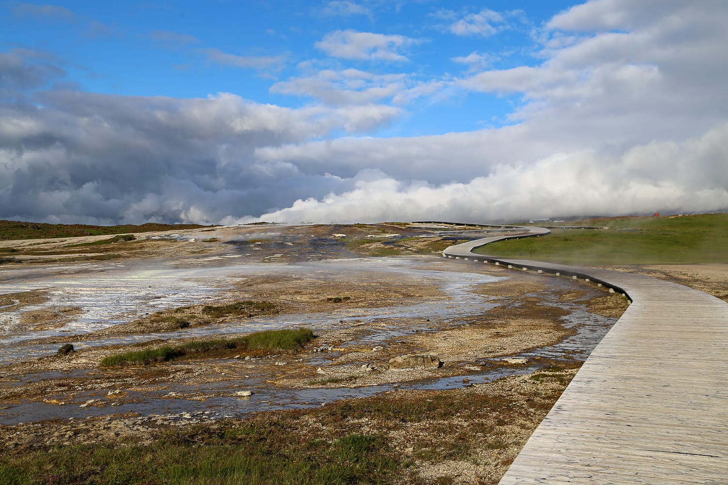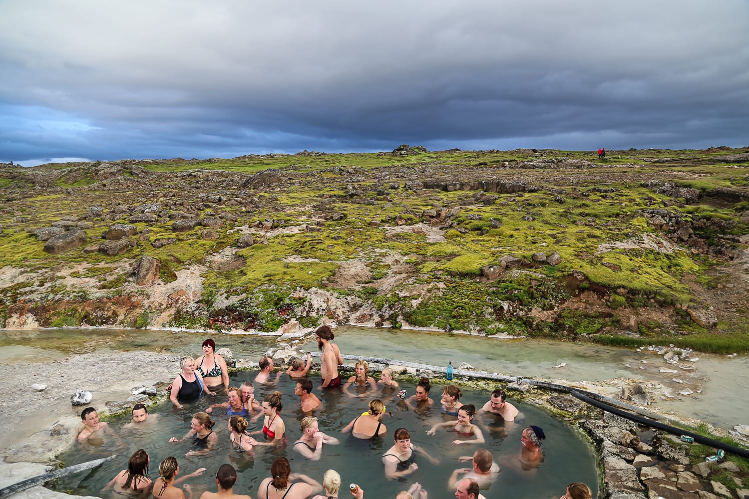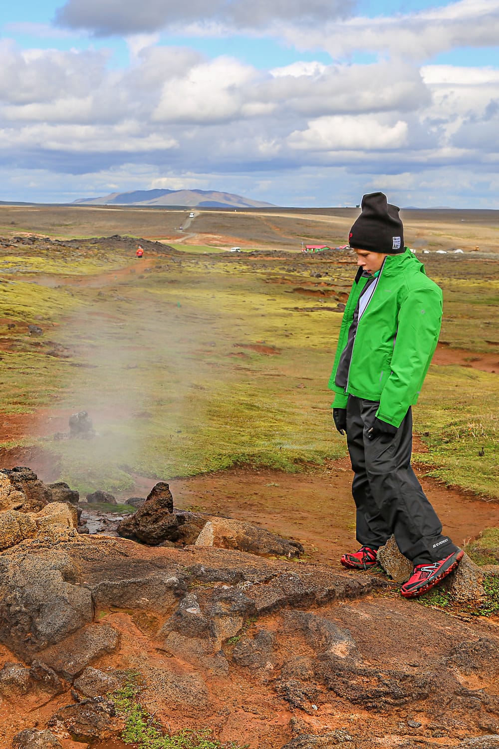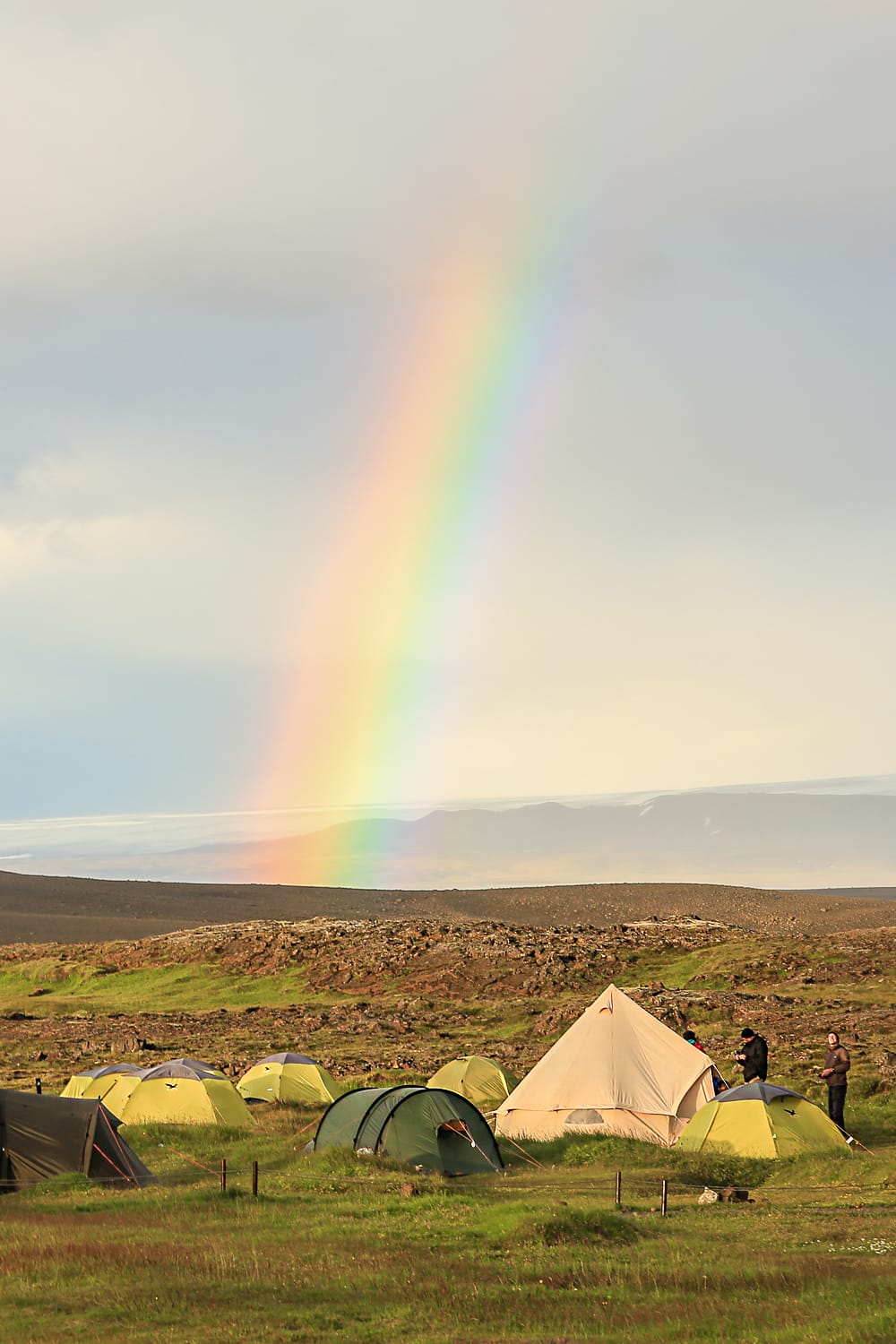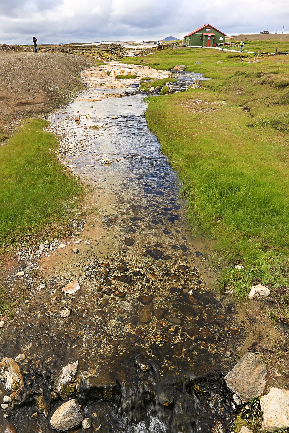 Kun uuvuttavan pitkän pomppimisen jälkeen saavuimme Hveravellirin leirintäalueelle, näkymä oli epätodellinen. Kuumien lähteiden, uskomattoman värikkään maan ja jäätiköiden ympäröimä luonnonsuojelualue on kuin Coenin veljesten leffojen outo lavaste. Aavemaisen rauhan keskellä tönötti camping-alueen pieni kahvilabaari, jossa väsyneet matkalaiset lääkitsivät itseään huurteisilla. Leirintäalueella on myös kuuma lähde, jonne oli ihana pulahtaa pitkän ajopäivän päätteeksi.
