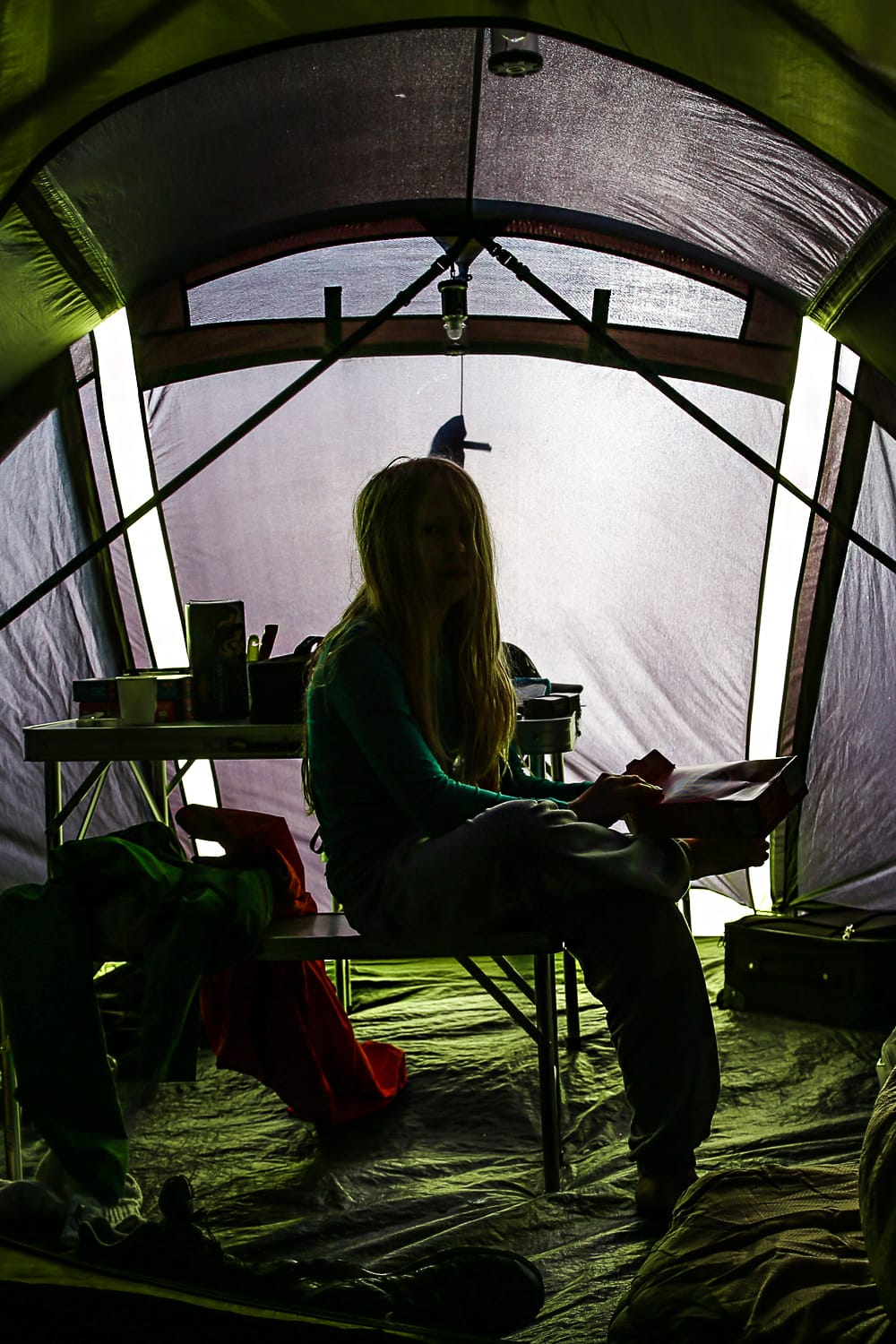 Yön nukuimme kotoisasti sateen rummuttaessa teltan kattoa. Aamuksi ei tarvinnut virittää herätyskelloa: leirintäalueen kupeessa määki kolmen lampaan lauma.