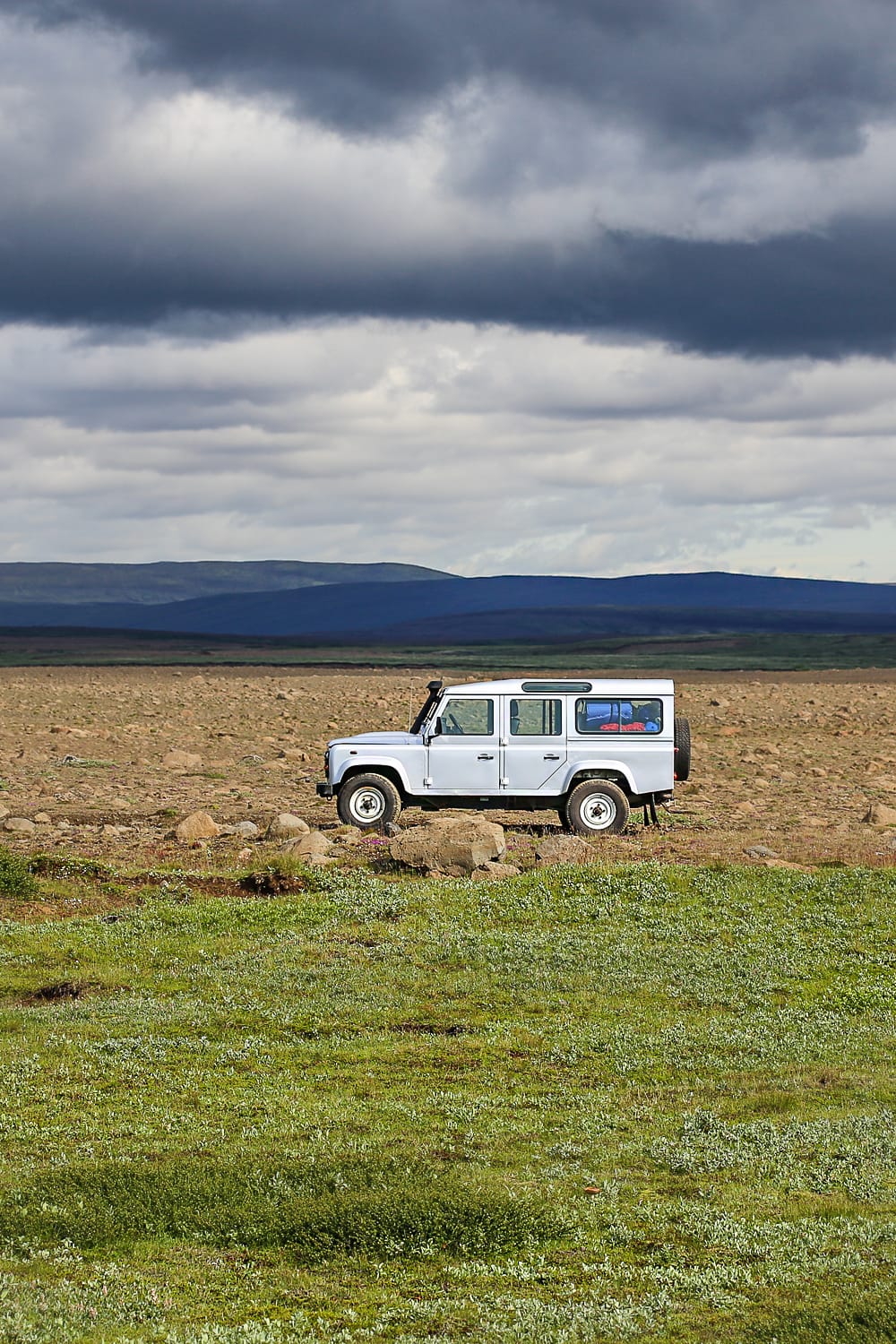 Islannin huikeimmat maisemat odottavat ylänköalueella, mutta reitti perille ei ole helppo. Land Rover joutui tositoimiin kivenmurikoiden ja kraaterien keskellä.