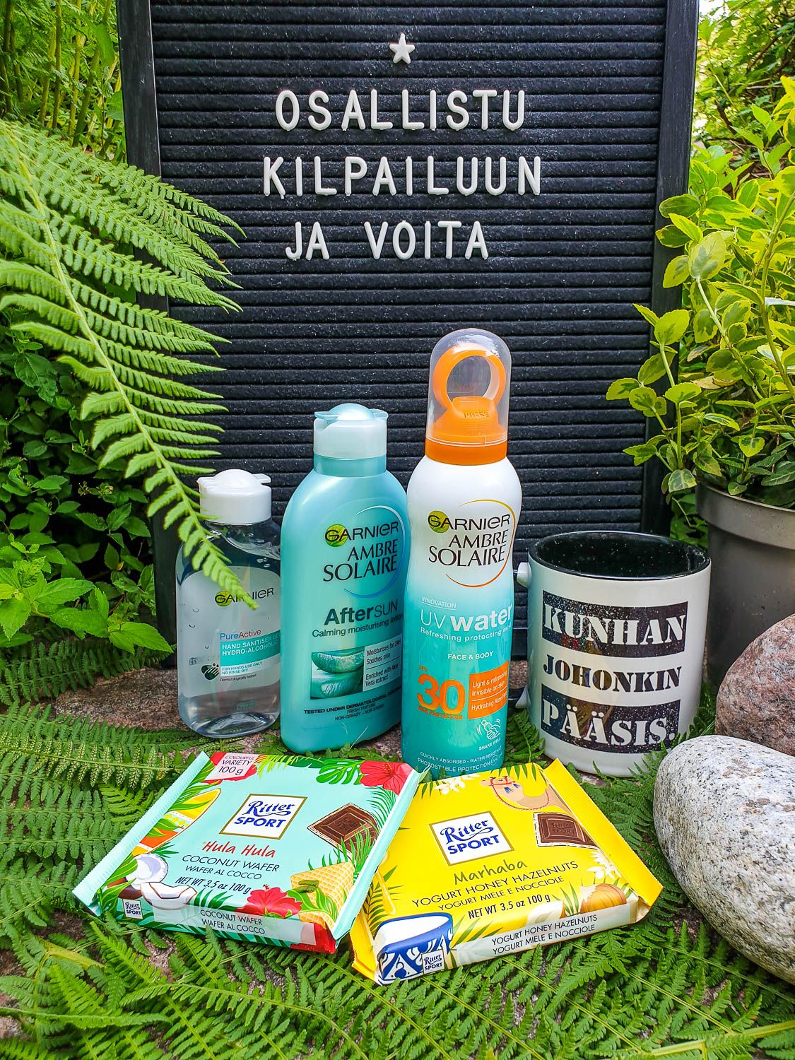 Vielä pitäisi jaksaa hetki puristaa, vaikka mieli leijailee jo ihan riippukeinussa. Joko siellä lomaillaan? Onko nahkaa ahkerasti rasvattu? No, pian on. Arvon kaikkien kesäkisaan 7.7.2021 mennessä vastanneiden kesken lomailijan selviytymispaketin, johon kuuluu Garnier Ambre Solairen aurinkosuojasuihke (suojakerroin 30) sekä saman sarjan After sun -voide ja käsidesi. Sokeritasapaino pysyy hallinnassa Ritter Sportin suklaalla ja iltapäiväkahvit hörpitään jo legendaksi muodostuneesta reissaajan keräilymukista.