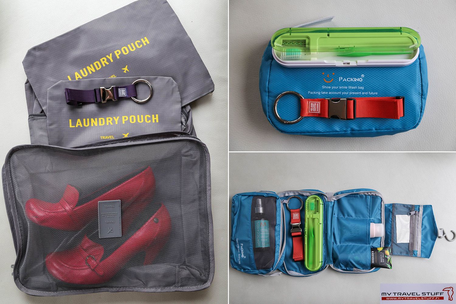 1. My Travel Stuffin pakkauspussisetin (6 kpl) avulla saat pysymään matkalaukun sisällön järjestyksessä. Pakkauspusseihin sujahtavat helposti kengät, alusvaatteet ja vaikka elektroniikkalaitteet. Matkan edetessä niihin voi siirtää likapyykin. Käsimatkatavaroiden helpottaja on puolestaan gripperi, jonka voit ripustaa vaikka reppuun. Kiinnityshihnassa kulkevat kätevästi takit, huivit tai vaikka varvastossut. Metallinen easy-clip lukko kiinnittää pidikkeen lujasti kohteeseensa. Palkinnon arvo on 30,80 euroa.