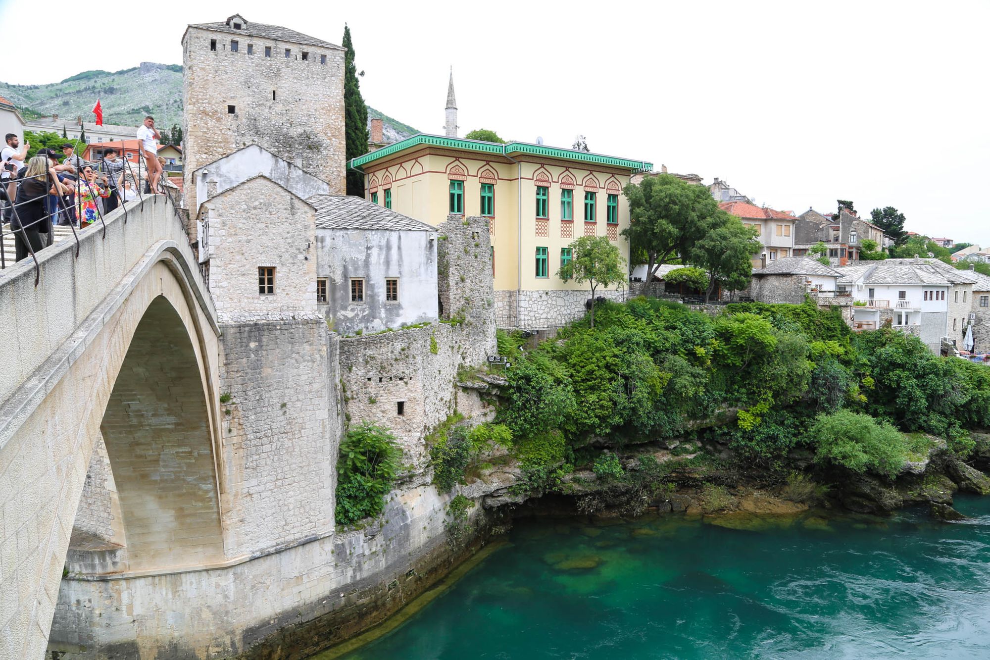 Rakastuin vuorten keskellä uinuvaan vanhaankaupunkiin heti, kun näin turkoosinvärisen Neretva-joen ja satumaisen Stari Most -sillan. Mostarissa voi aistia vielä julman lähihistorian, sillä monet rakennukset ovat täynnä Balkanin sodan (1993) pommitusten jälkiä. Taistelujen symboliksi nousi tuolloin nimenomaan 1500-luvulla rakennettu Stari Most, jonka Bosnian kroaattiarmeija tulitti panssarivaunutykeillä hajalle. Tilalle rakennettiin onneksi vuonna 2004 uusi silta, joka on täydellinen kopio alkuperäisestä. Jostain olin lukevinani, että Stari Mostilla olisi kuvattu myös Game of Thronesia, mutta en nyt mene vannomaan.